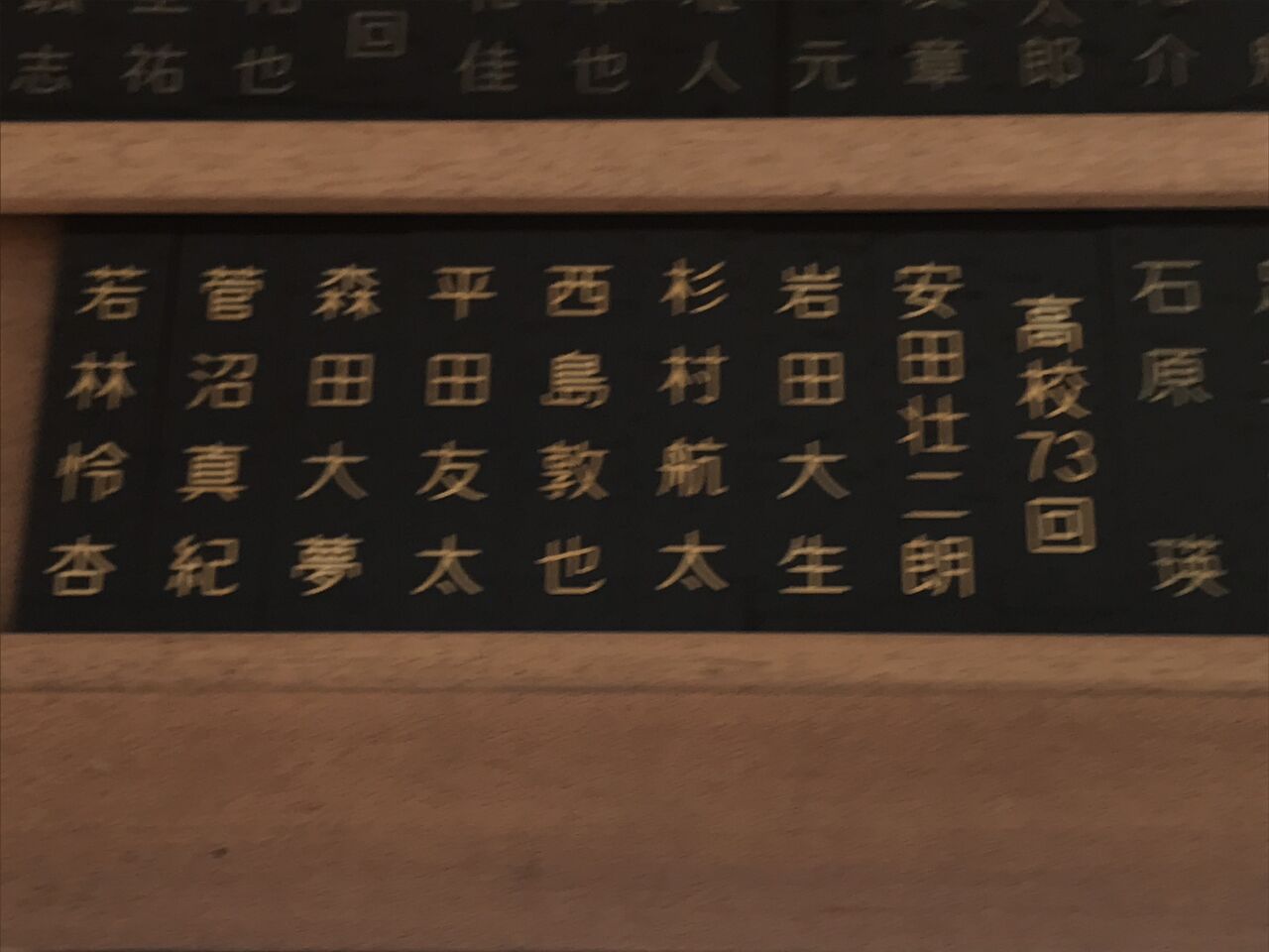 バックネット裏の本部室に、春に卒業した高校73回のOBの名札が入りました。全部で8名(内マネージャー2名です)