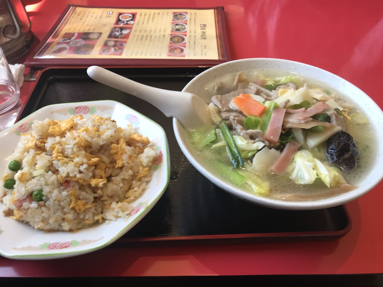 午後から保護者会主催の1年生歓迎会のため、中川OB会長とグルメ街道の「東王」で昼食。私は北京タンメンとチャーハン。