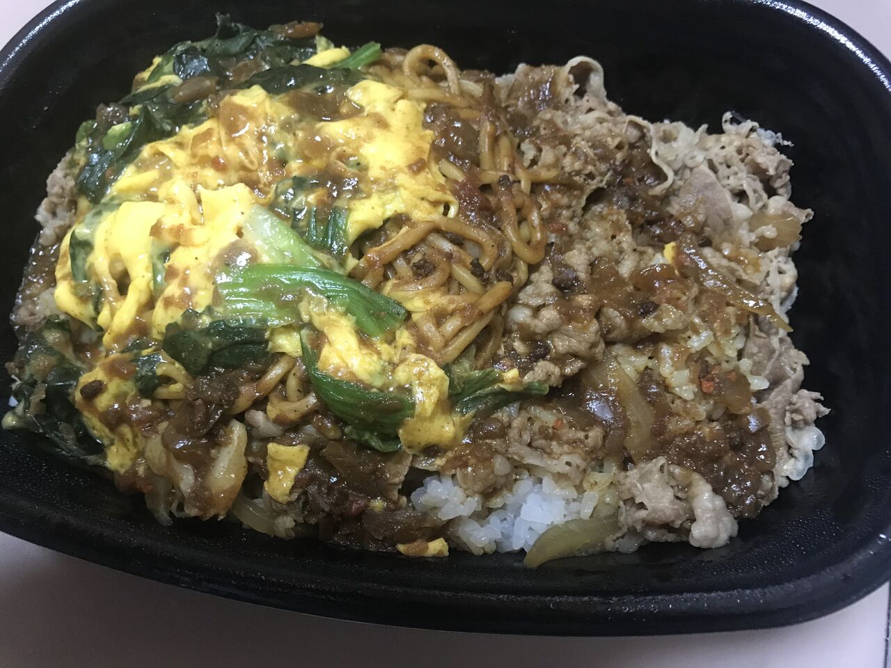 「すきや」の焼きそば牛丼大盛です。さすがの私もお腹一杯です。