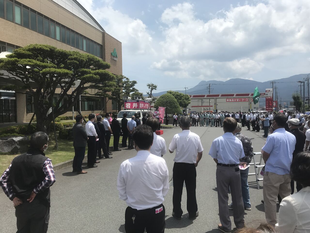 これは11日に御殿場農協であった、岩井茂樹候補の演説会でした。