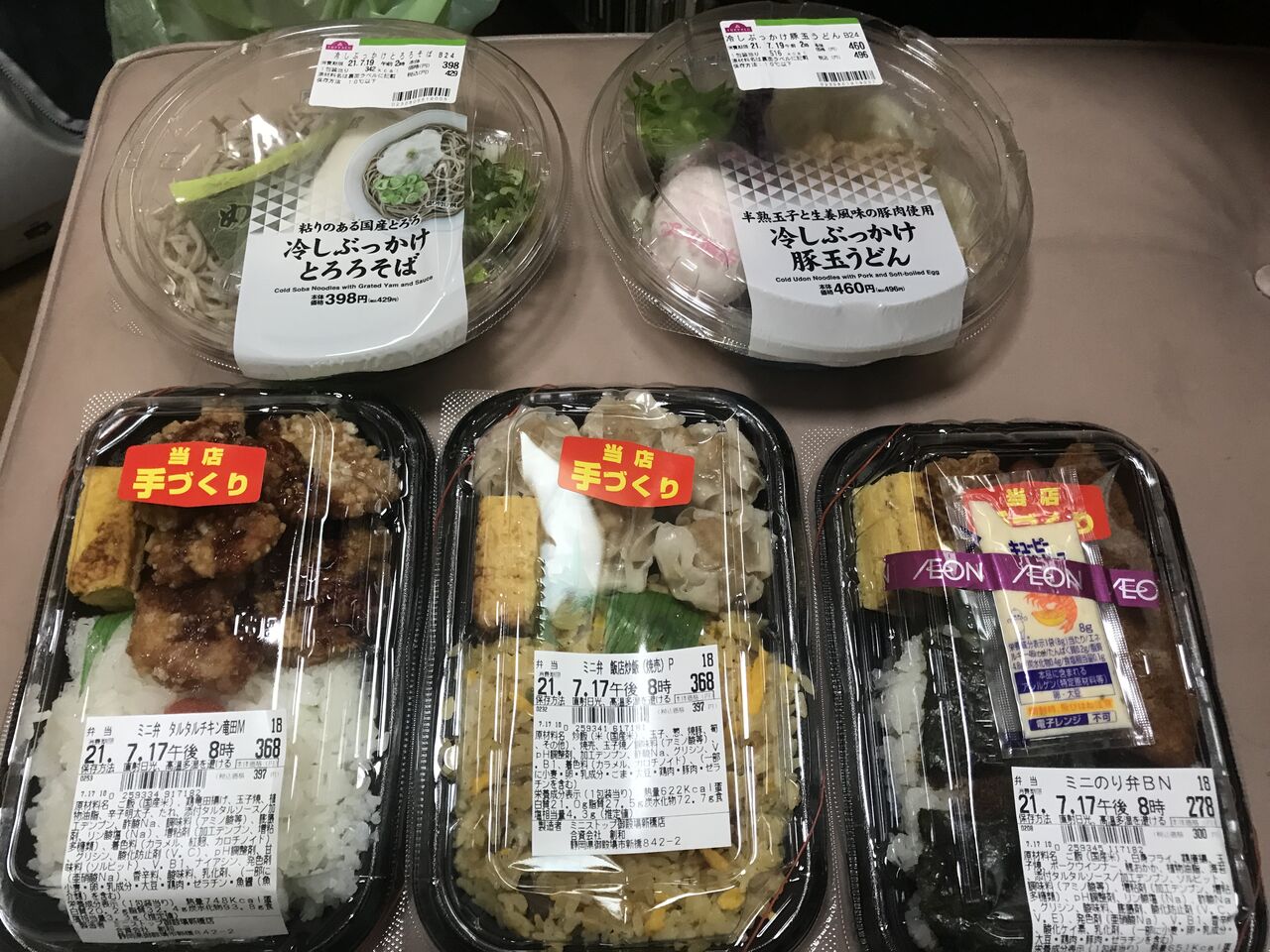 ある休日の昼ご飯、家族の分まで買ってきました。