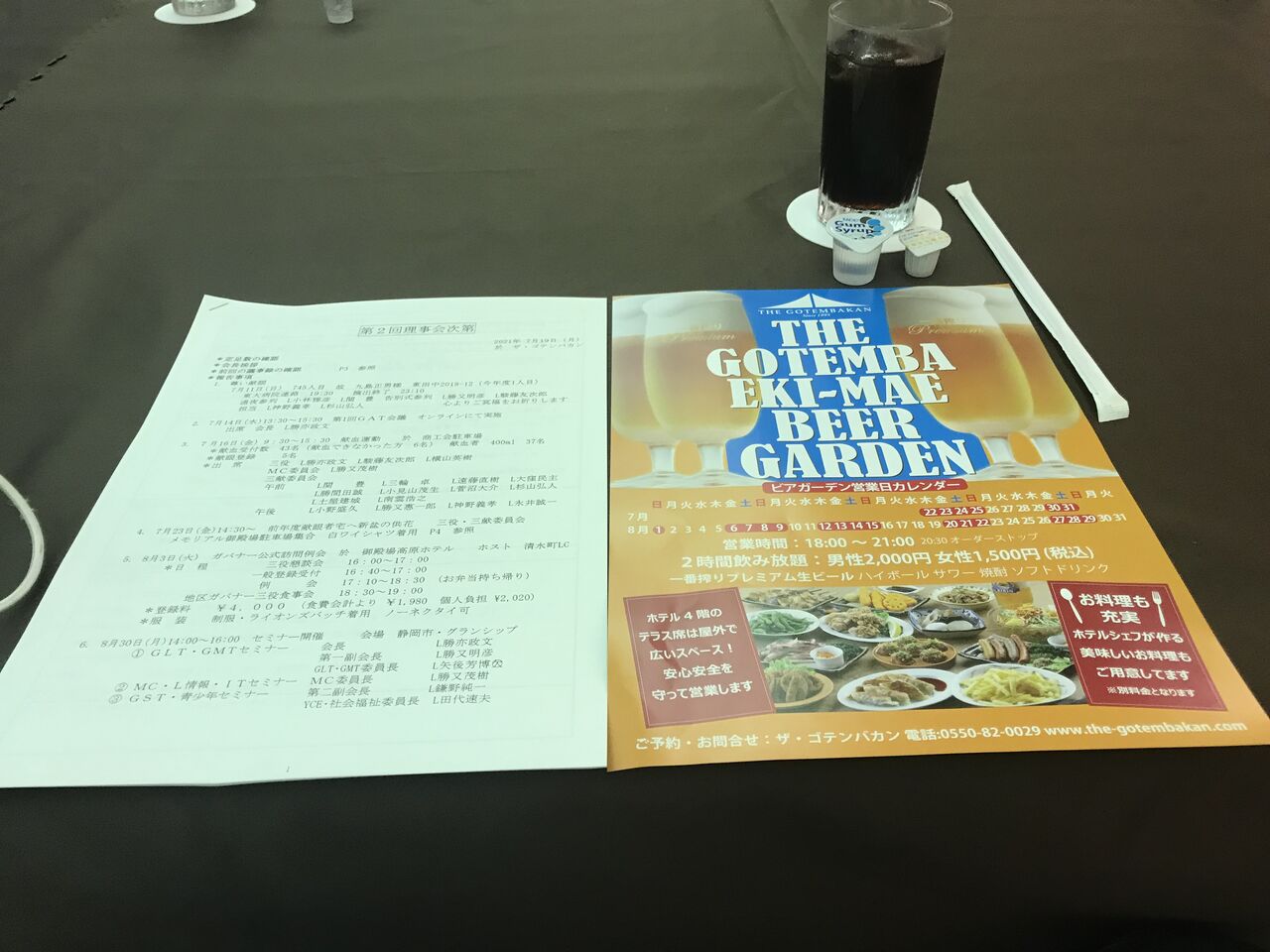 ライオンズクラブ理事会、ザ・ホテルゴテンバカン、ビアガーデン、弁当、サマーポンチ、フレンチクルーラー、「肉汁うどん まえはら」生うどん