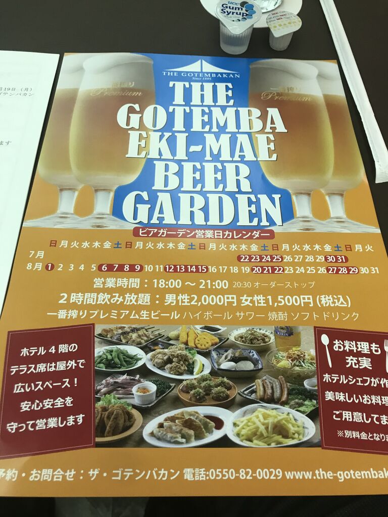 会員でもあるホテルの南雲君がお出迎え&ビアガーデンの宣伝チラシをくれました。