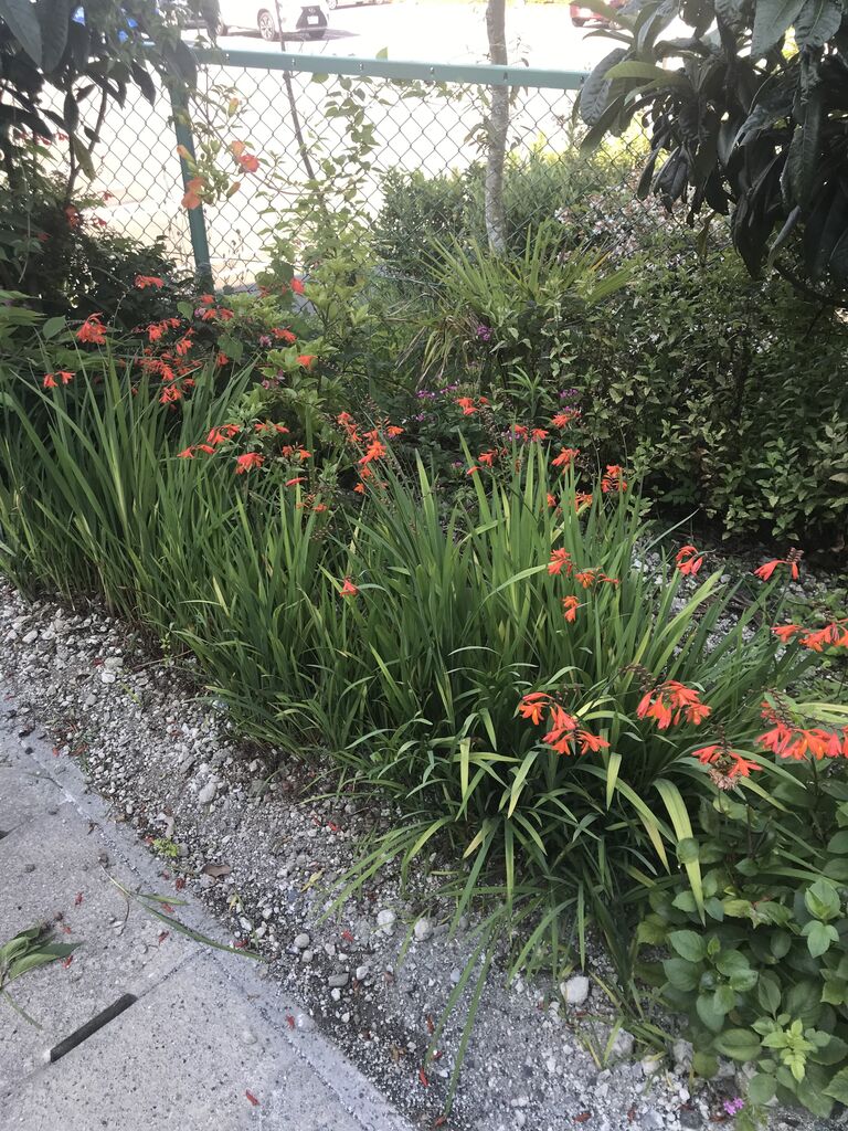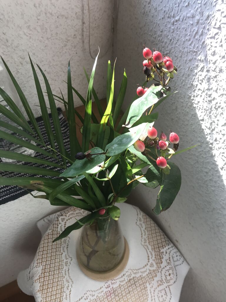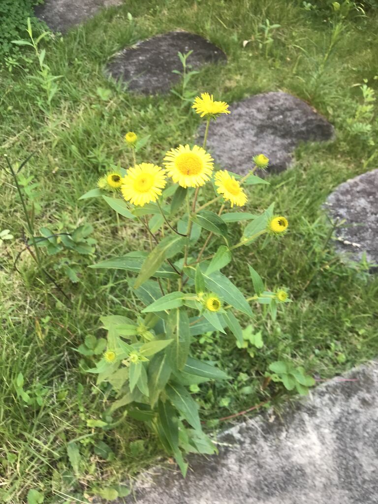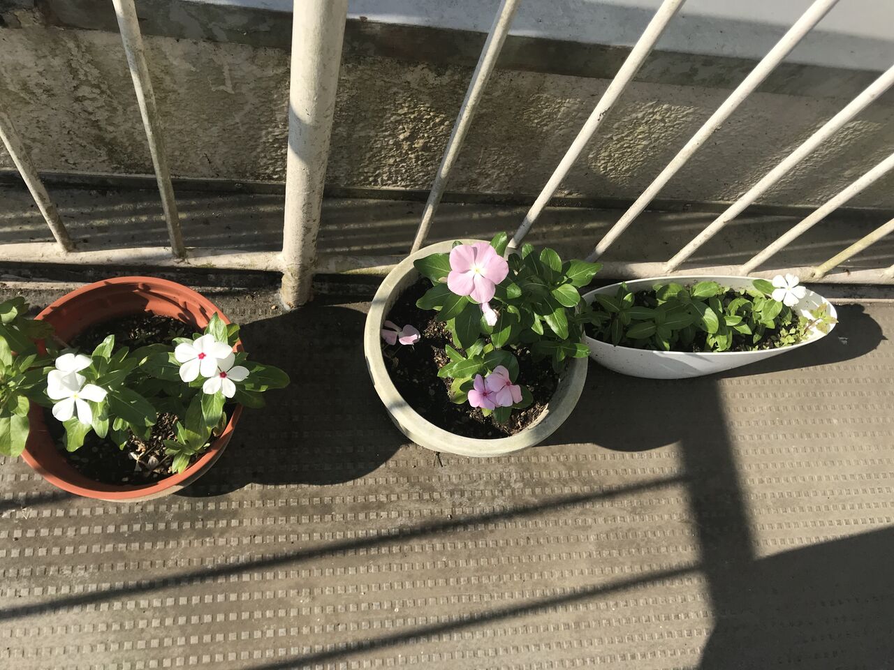 家から会社へ向かう道の花。会社の入り口前、階段踊り場の花。