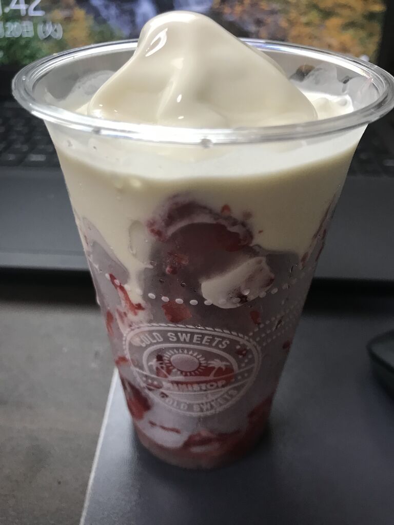 ミニストップ果実氷いちご。家族の分も買ってきました。