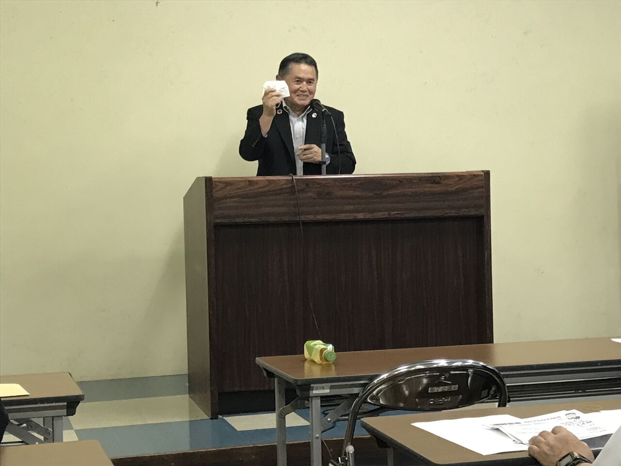 司会は、選対事務局長の田山君。選対委員長の坪口さん挨拶。