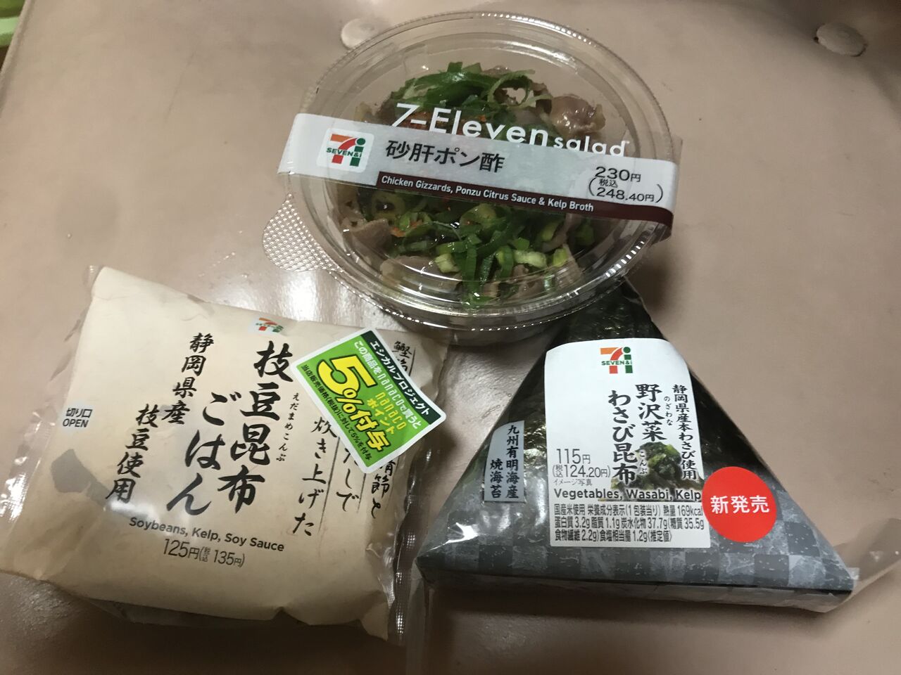 ある日の夜食。セブンイレブンの砂肝ポン酢、まいうー!