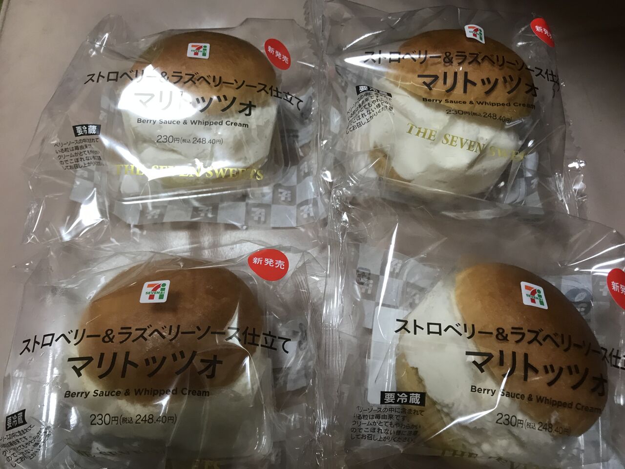 デザートは、セブンイレブンのマリトッツォ ストロベリー&ラズベリーソース仕立て。