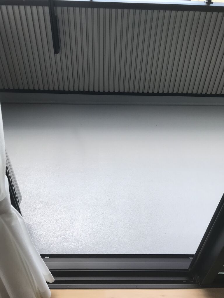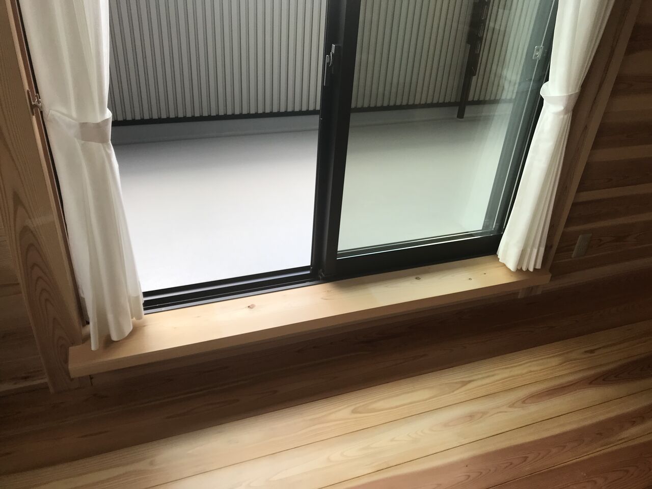 ベランダ。ベランダのマタギのところの板を幅広にして、腰かけられるようにしています。