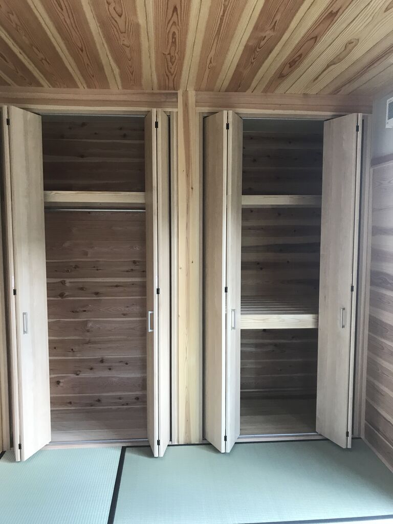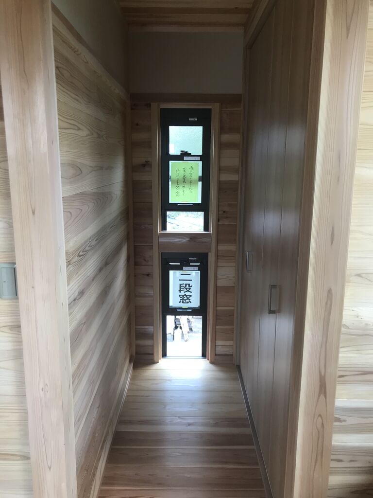 柱と柱の間に杉板を嵌める板倉工法という、木材を沢山使った工法で建てられた家です。