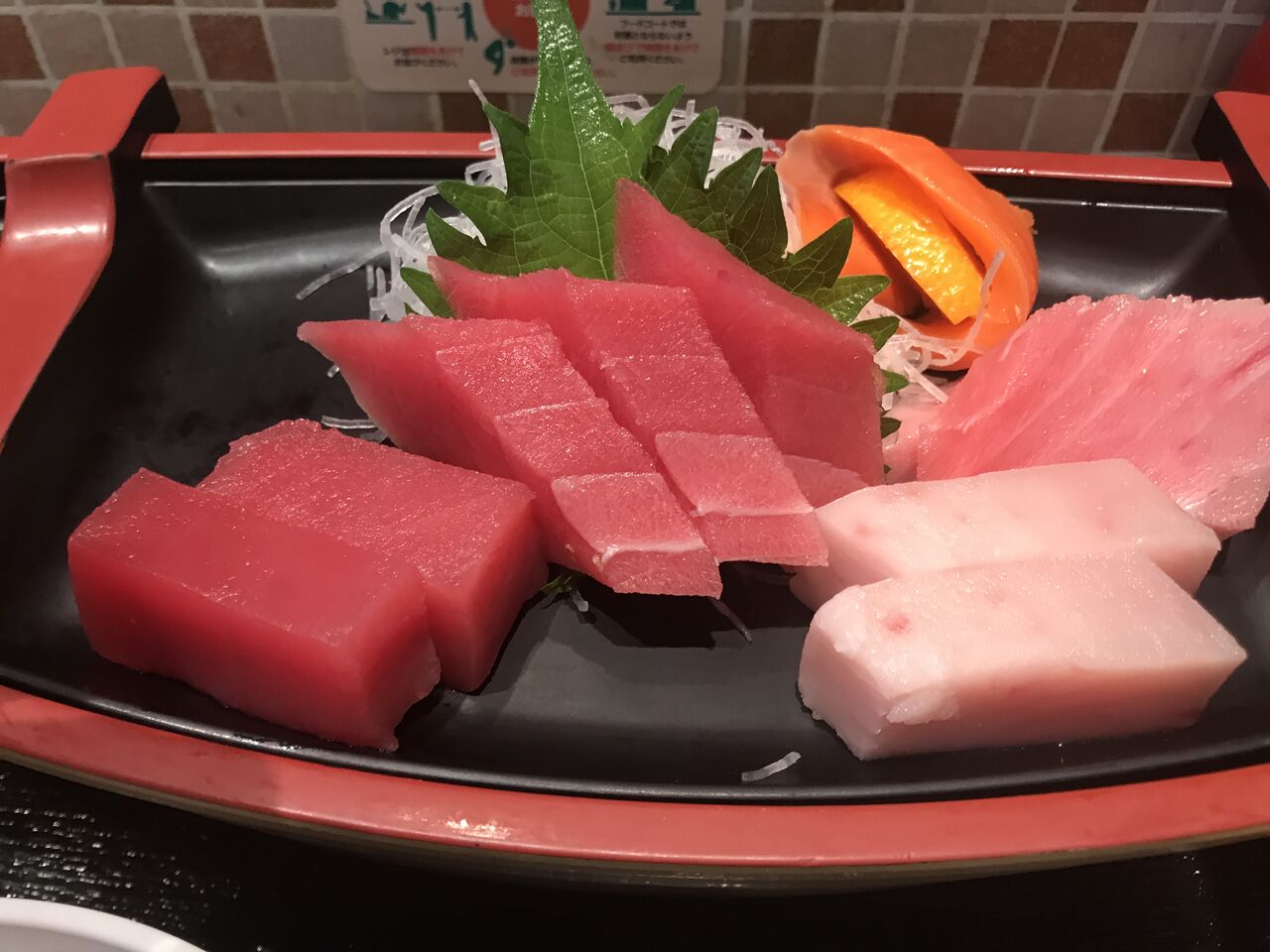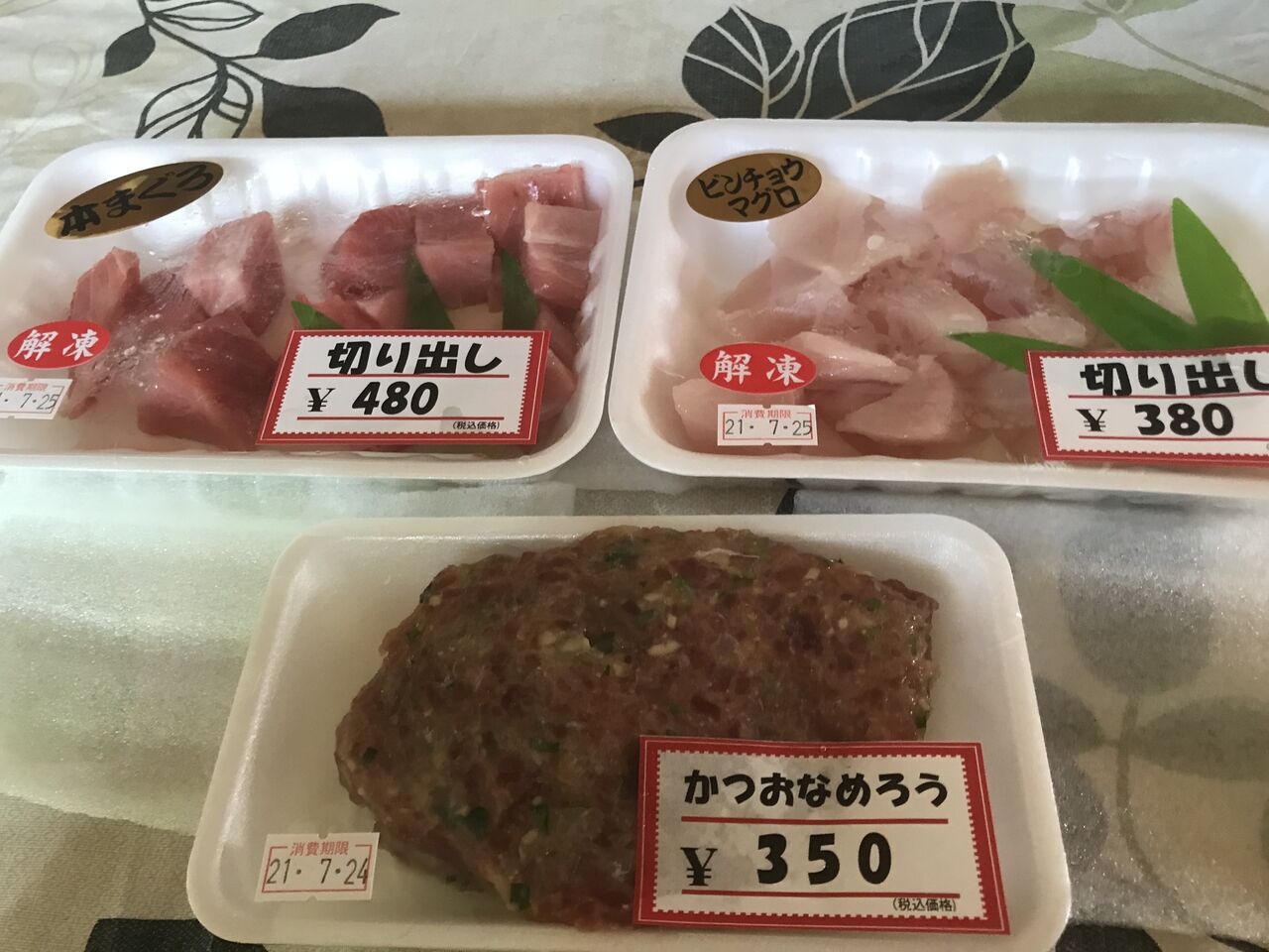 お土産に、かつおのナメロウと本鮪とビンチョウ鮪のぶつ切りを、お土産に買いました。