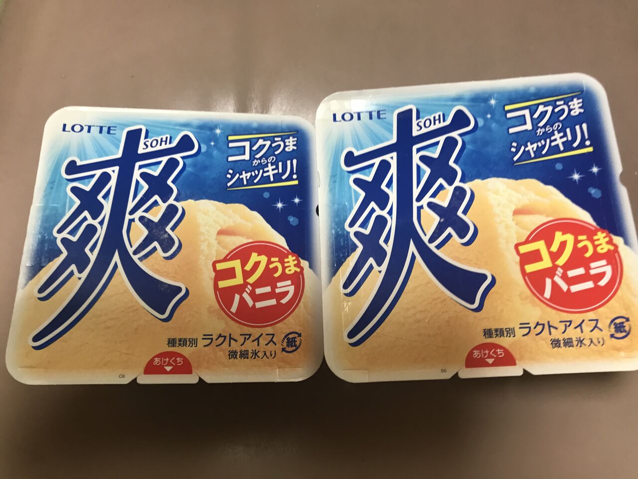 「爽」バニラ2個は、セブンイレブンの無料クーポンでいただきました。