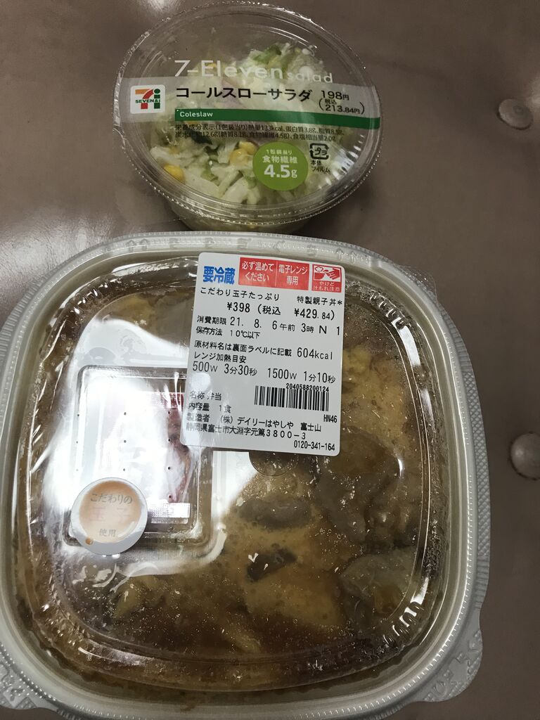 セブンイレブン コールスローサラダとこだわり玉子たっぷり特製親子丼ですが、食べた記憶がありませんが。きっと食べたとは思います。