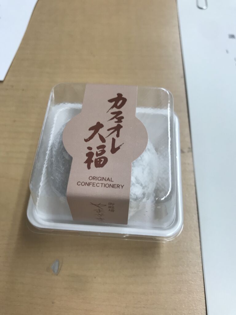 長田会長が「カフェオレ大福」を差し入れしてくれました。