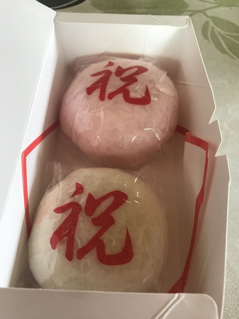 母が敬老の日のお祝いで、いただいた紅白饅頭です。