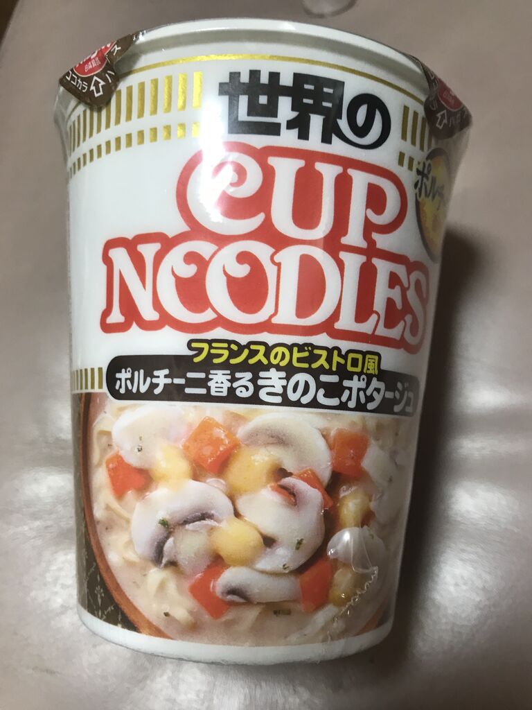 カップヌードル新フレーバー、ポルチーニ香るきのこポタージュ。