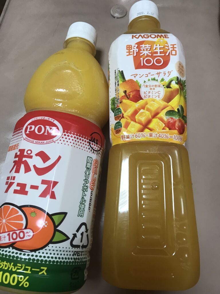 ポンジュースと野菜生活100%マンゴーサラダ、まいうー!