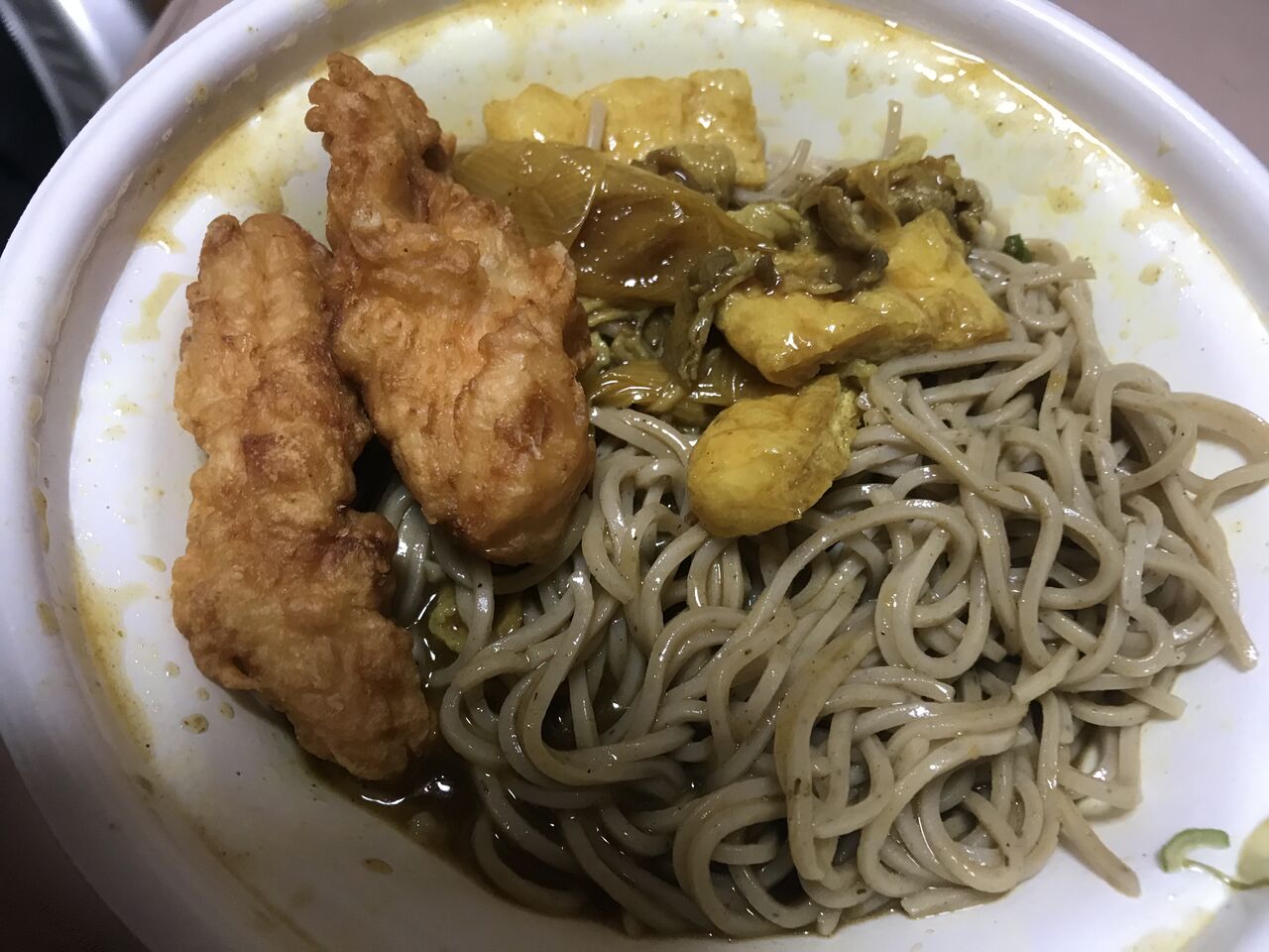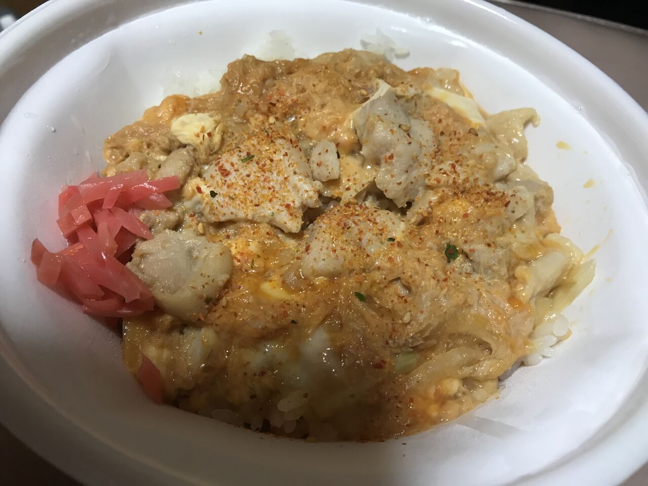 帰りに「なか卯」でカレー蕎麦と親子丼大盛を購入して、家で遅い夕食です。