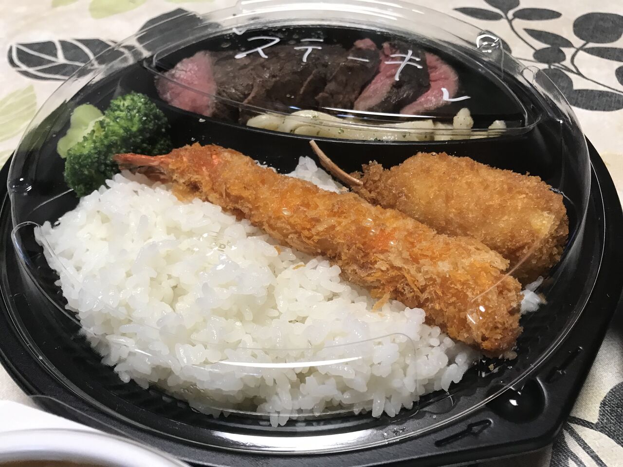 これがレギュラーで、海老フライと蟹爪トッピングです。カレーは馬肉カレーです。