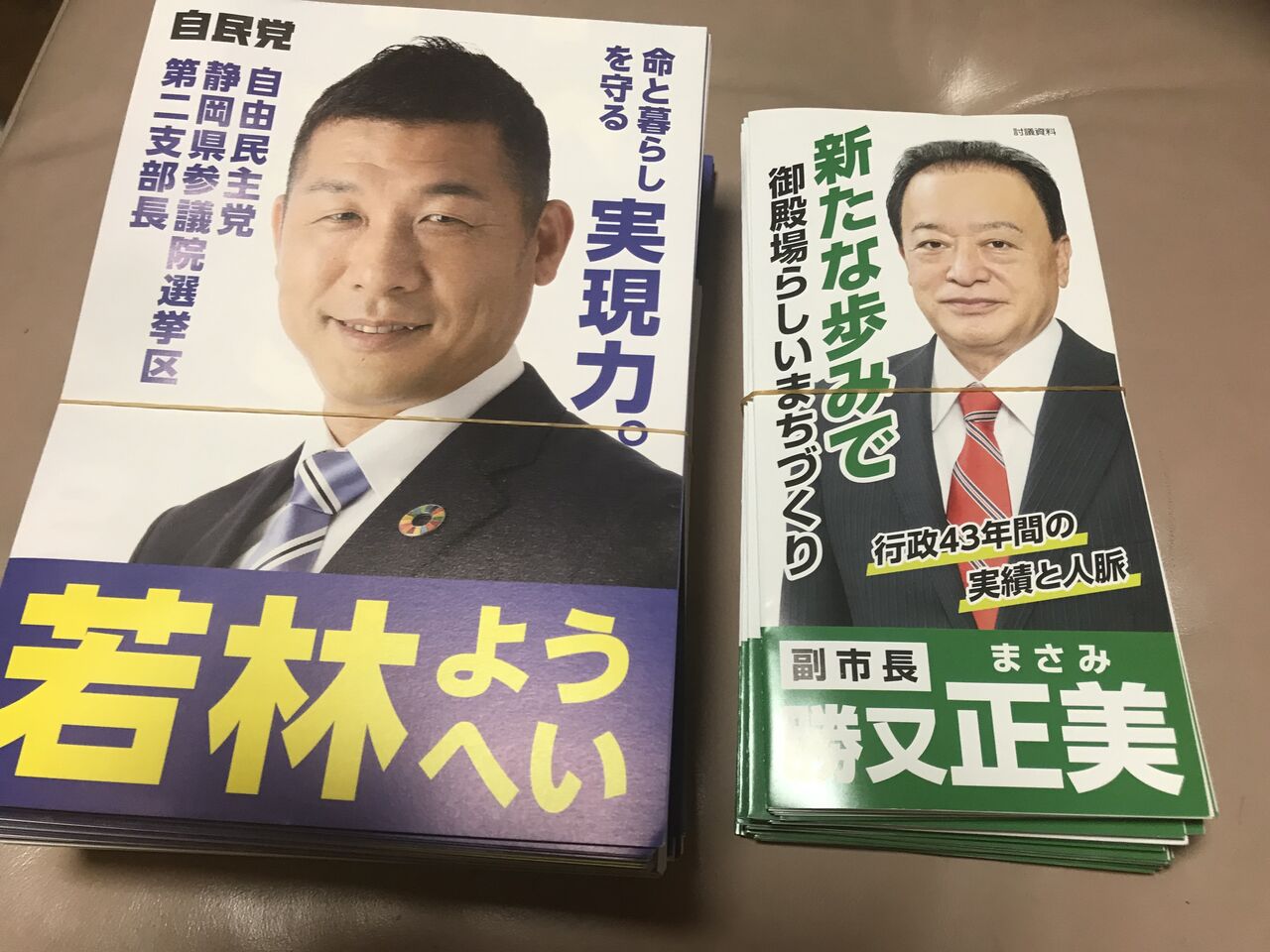 若林参議院議員候補と若林市長辞任に伴う御殿場市の市長選挙に立候補した、勝又正美元副市長。おかげさまで昨日、新市長に当選いたしました。ご協力いただいた方々、ありがとうございます。