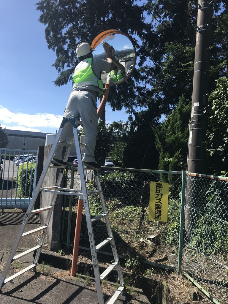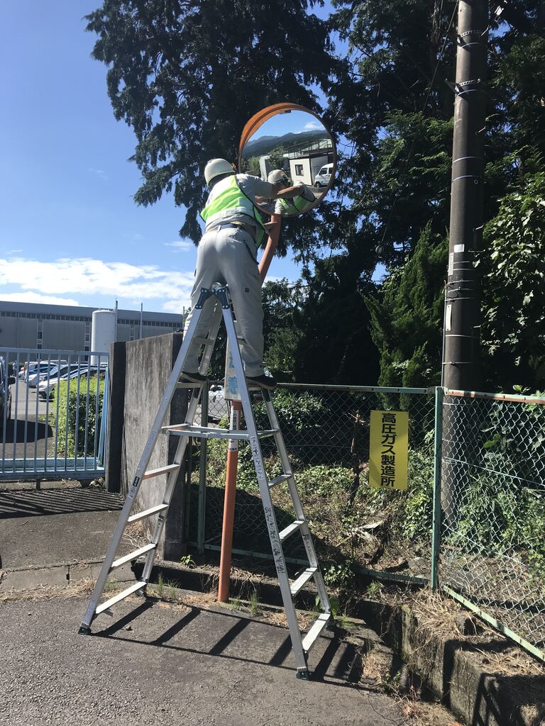 この日は御殿場市建設業協会の奉仕作業で、社員さんと一緒に市内のカーブミラー清掃してきました。