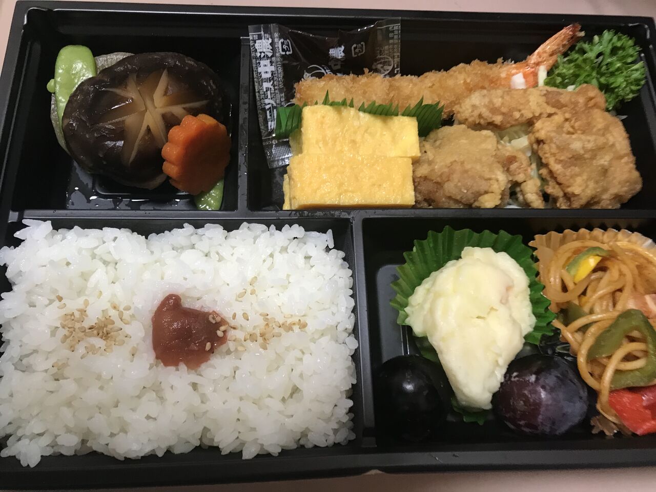 仕事を終え、お弁当を貰って帰り、家で食べました。富岳会さんのお弁当です。
