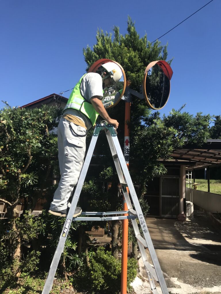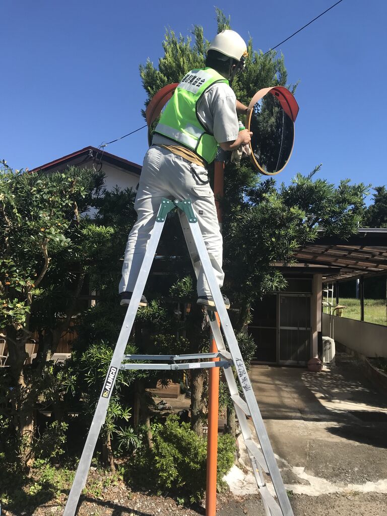 地元富士岡の35か所のカーブミラーを清掃。私は脚立を運び、抑える役ですけどね。