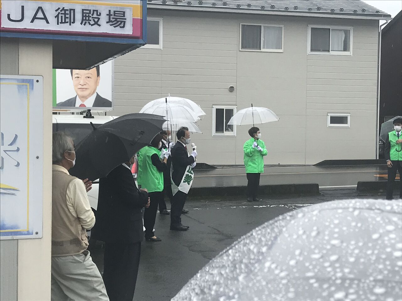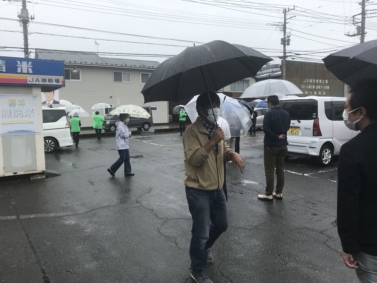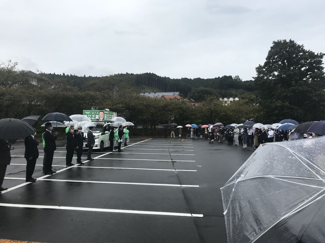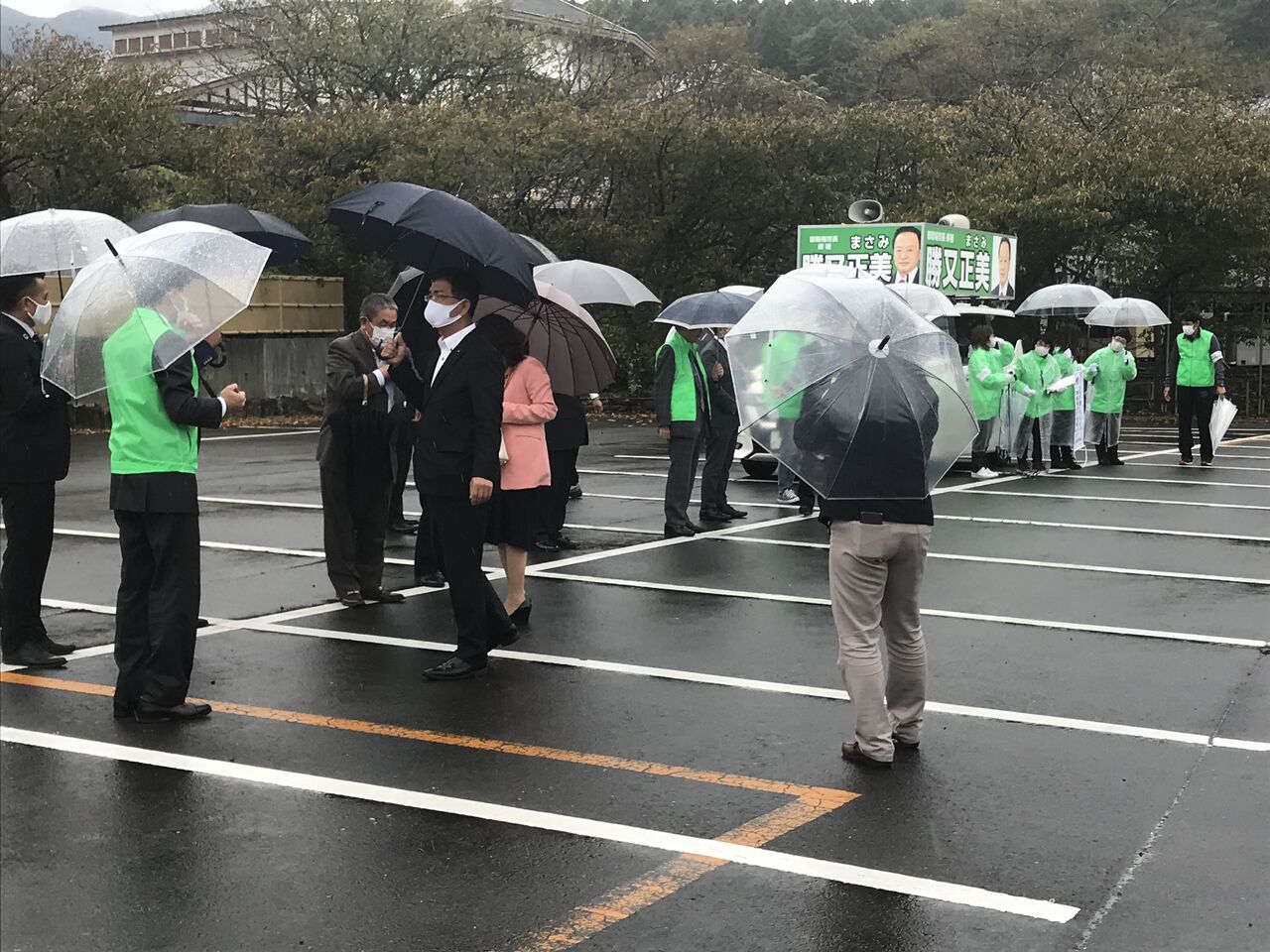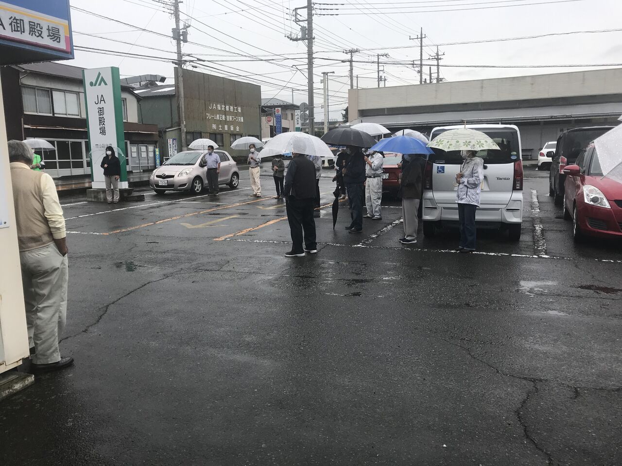 これは先日終了した、御殿場市長選挙の時の勝又正美候補の分散出陣式の模様です。コロナの為に出陣式を各地を回り行いました。