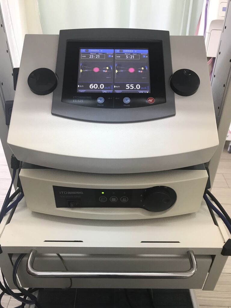 腰が痛くて、岳麓接骨院さんに通っています。これは、電気治療の器械です。