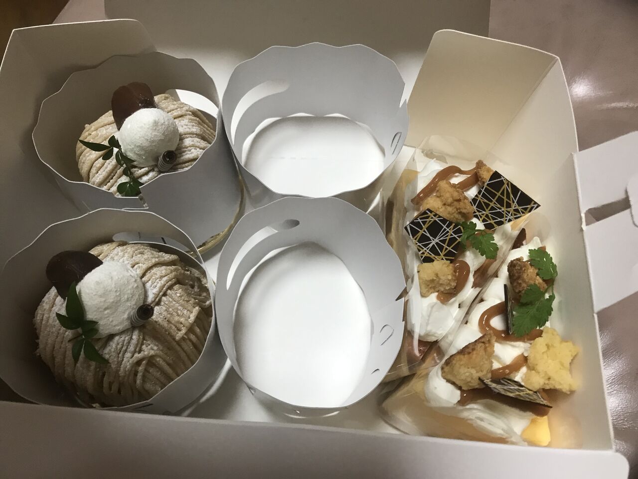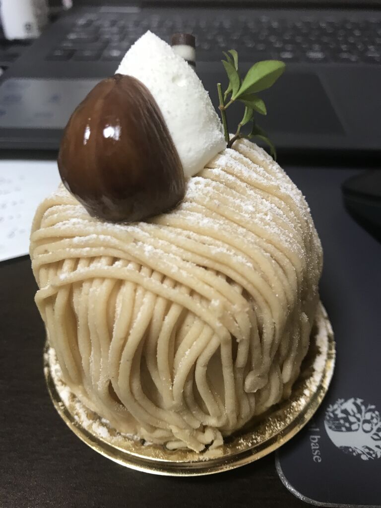 お土産のケーキ、私はモンブランをいただきました。まいうー!