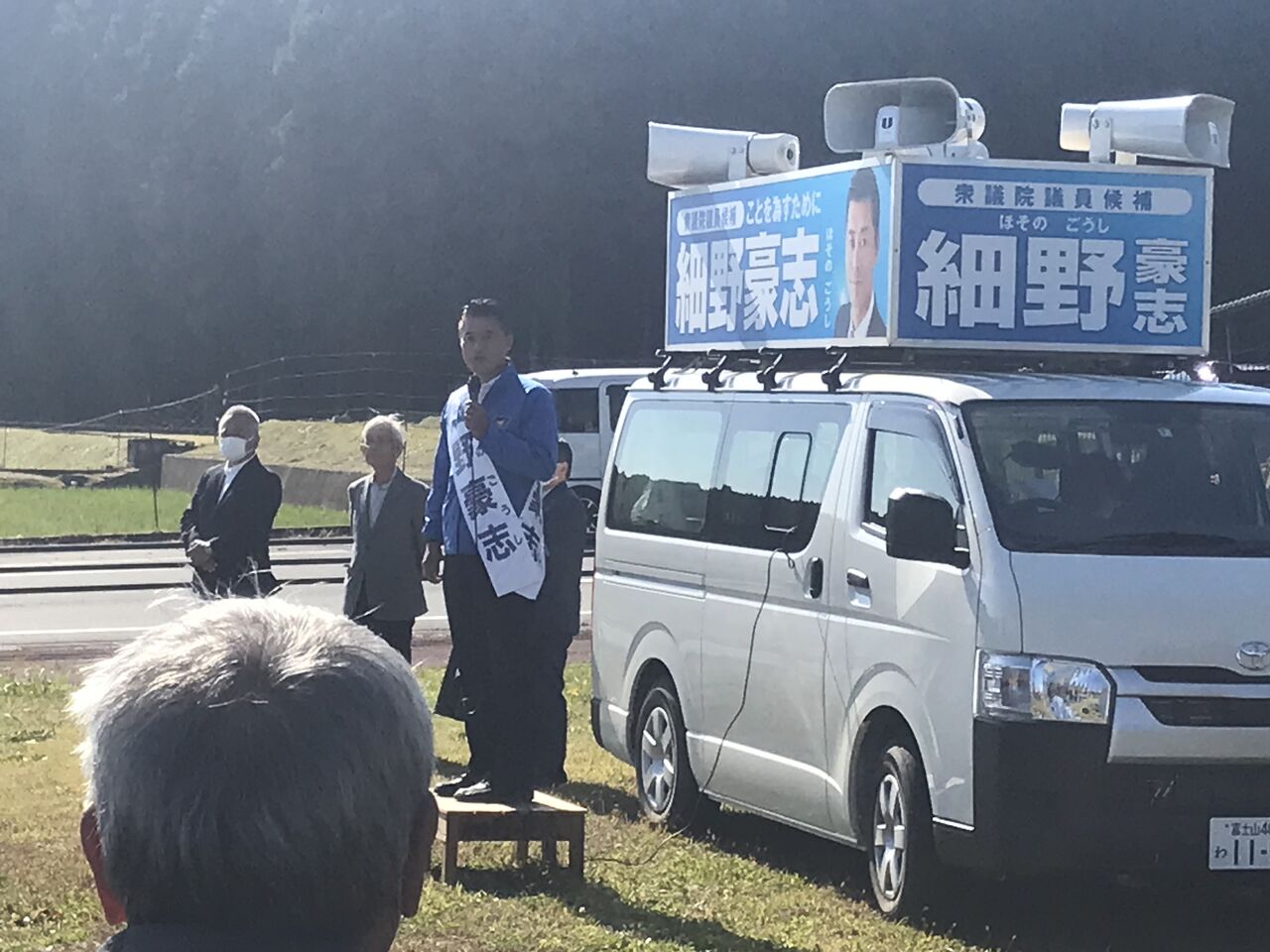 この日は、細野豪志衆議院議員候補の選挙カーの先導を午後からしてました。