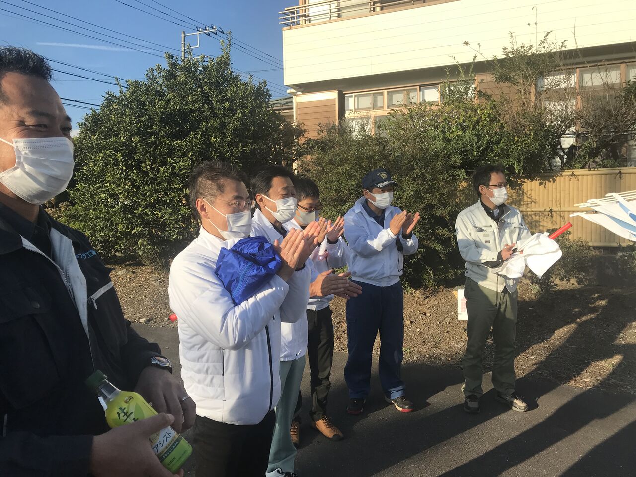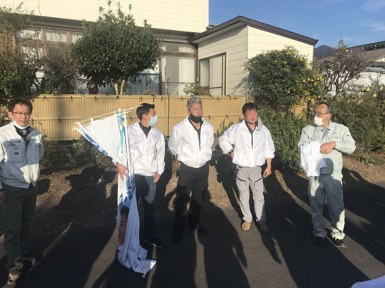 白いウインドブレイカーを着ているのが、私が属する「御殿場世論研究会」という、細野豪志氏の御殿場・小山の若手の後援会メンバーです。