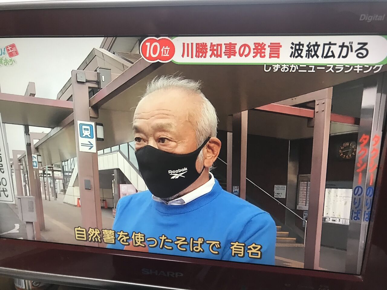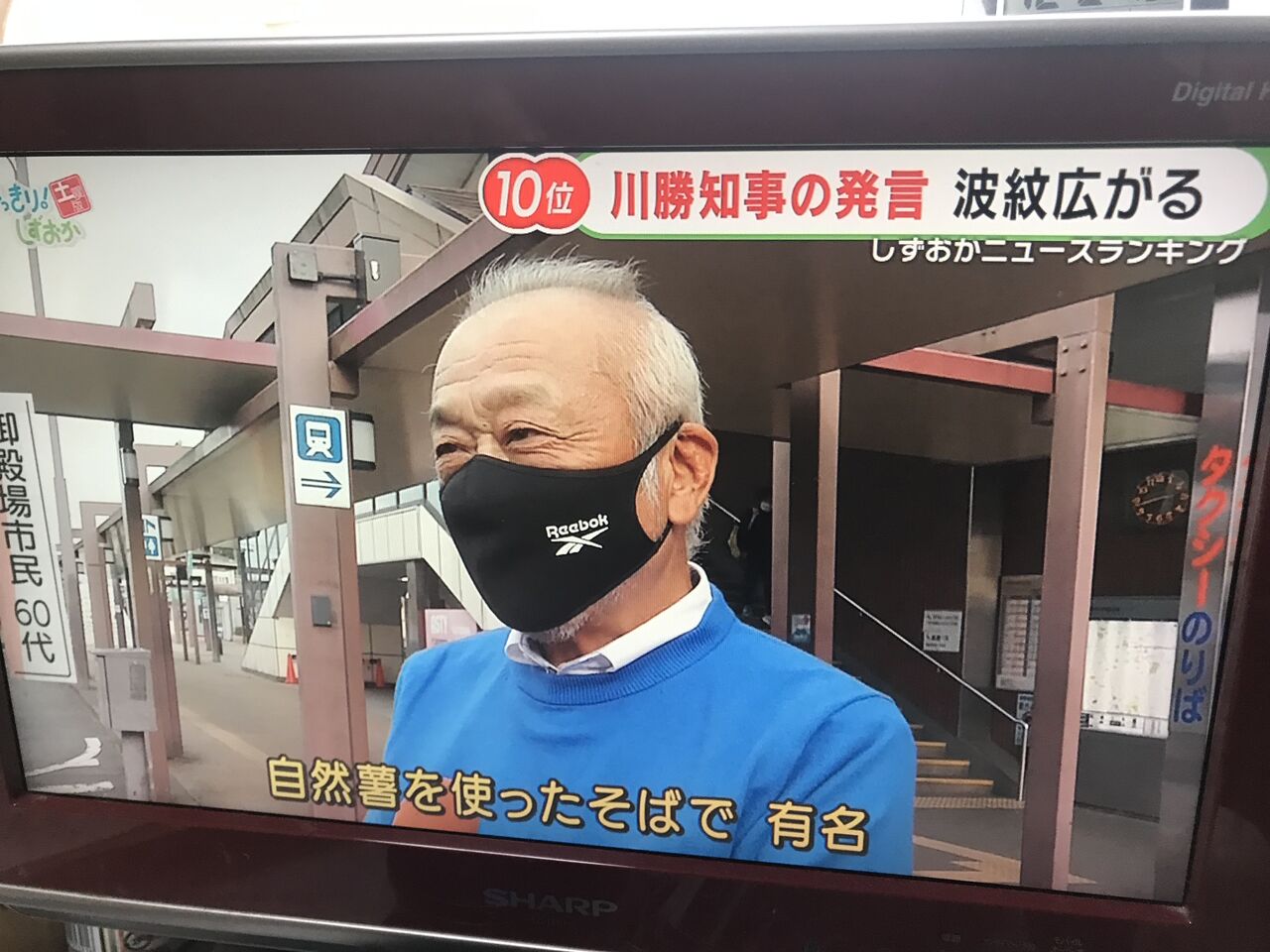 御殿場ライオンズクラブ勝亦会長が「御殿場コシヒカリ発言」の取材で御殿場駅前でインタビュー受けてました。