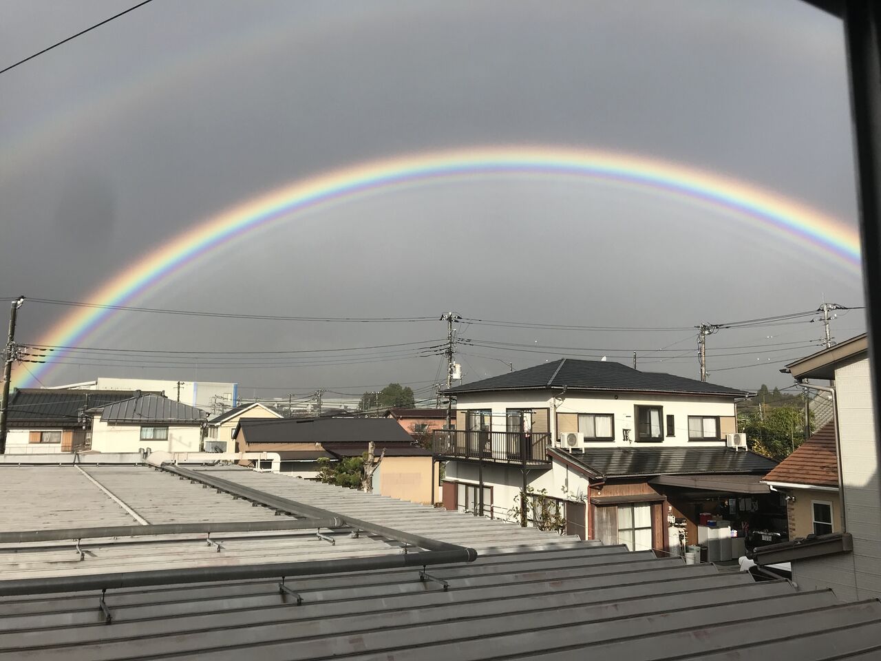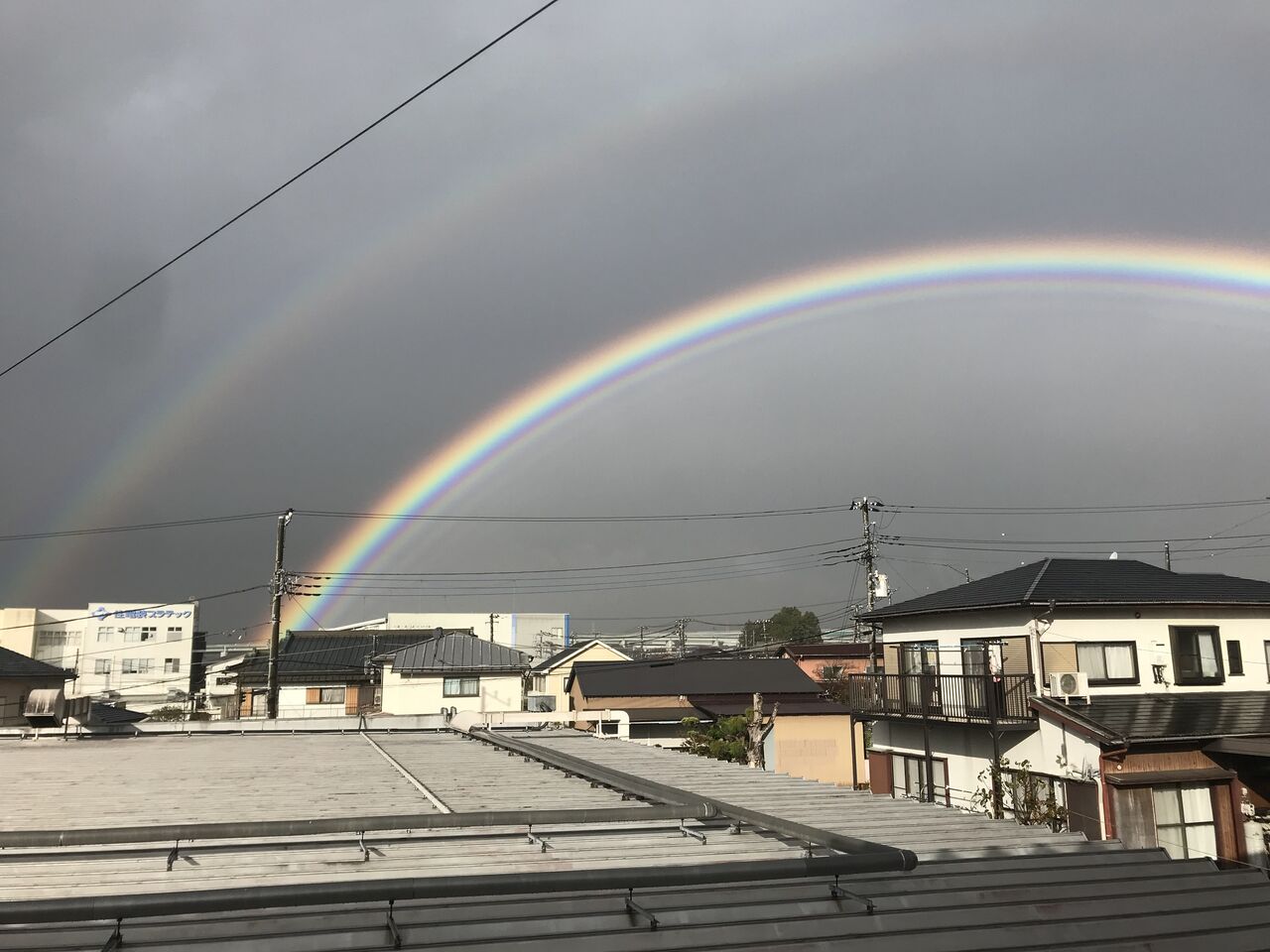 これはある日の朝、会社事務所から撮影した2重の虹です。くっきり見えました。
