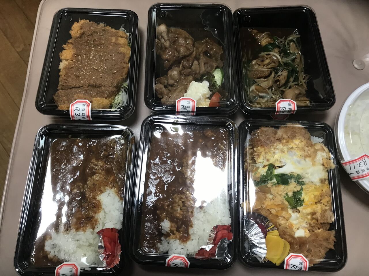 「にく友」さんでテイクアウト。カレー、カツ丼、にく友丼(ソースカツ丼)、焼肉、ホルモン炒め。
