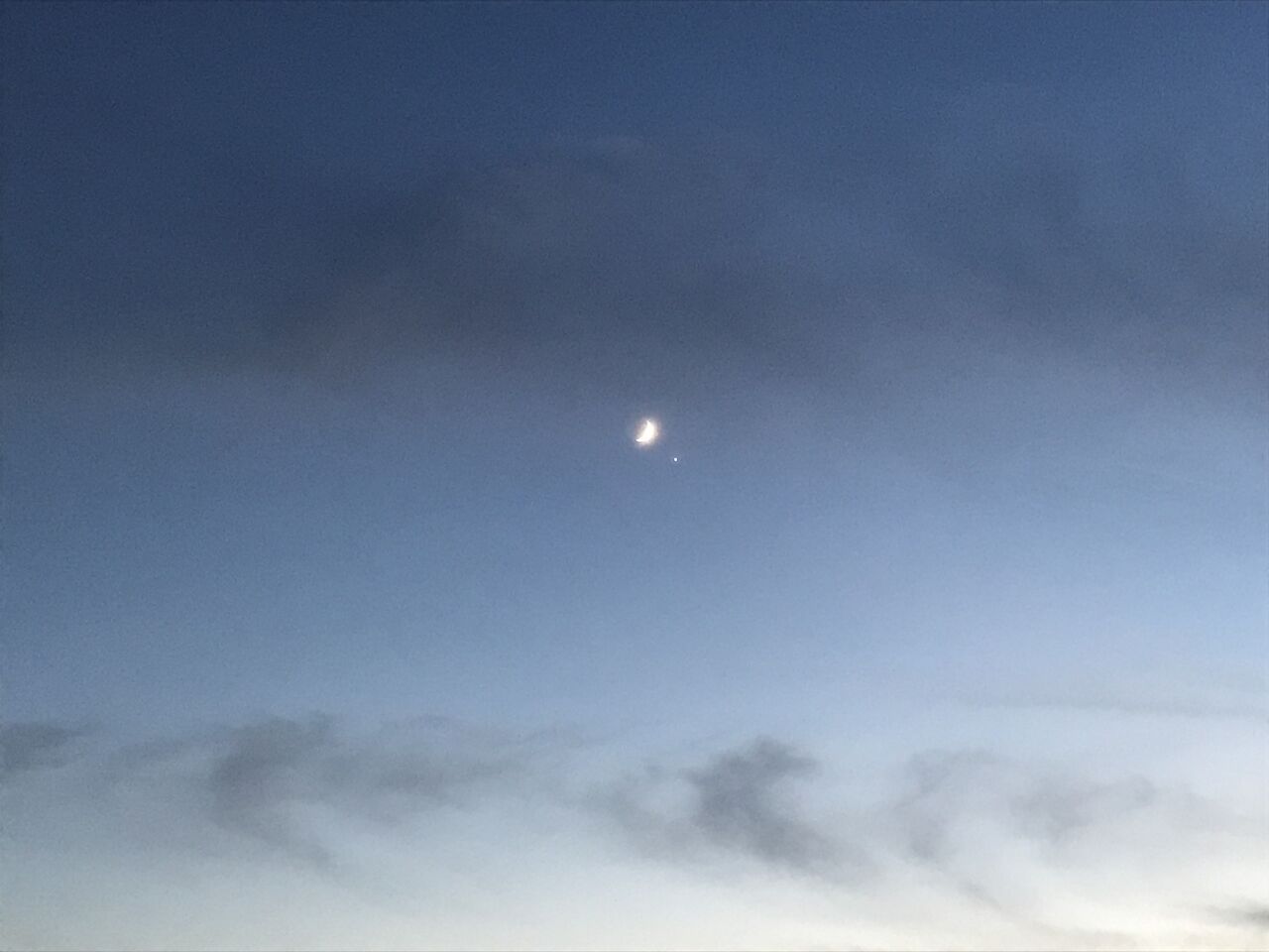 この日は夕方、金星が月のすぐ近くで大きく輝いていました。拡大してご覧ください!
