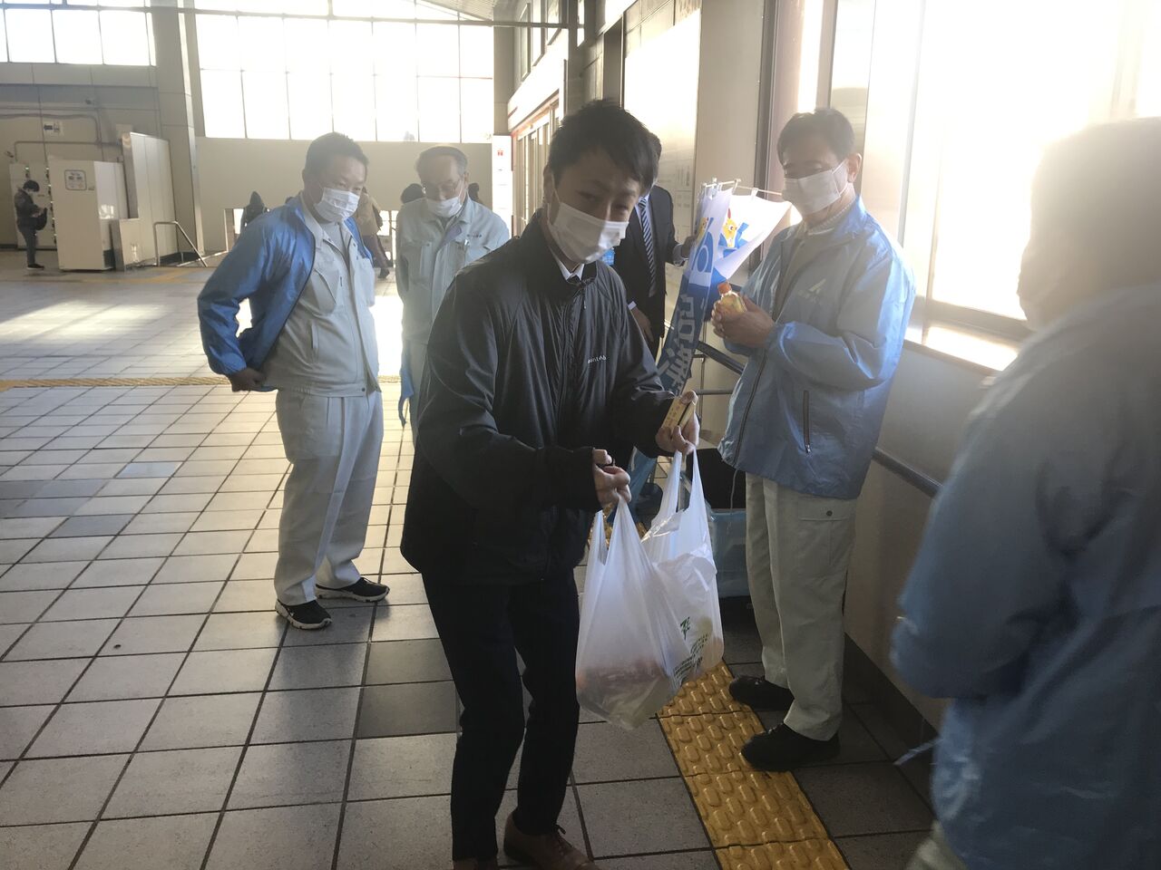 この日は、早朝の御殿場駅改札前で、沼津法人会の納税啓蒙活動でマスク配りました。