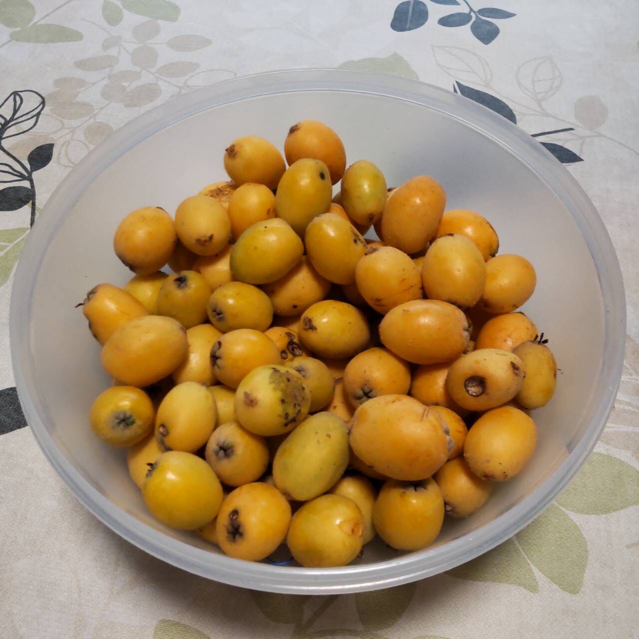 うちの木で採れたビワ。口が痒くなるから、僕は余り食べない。
