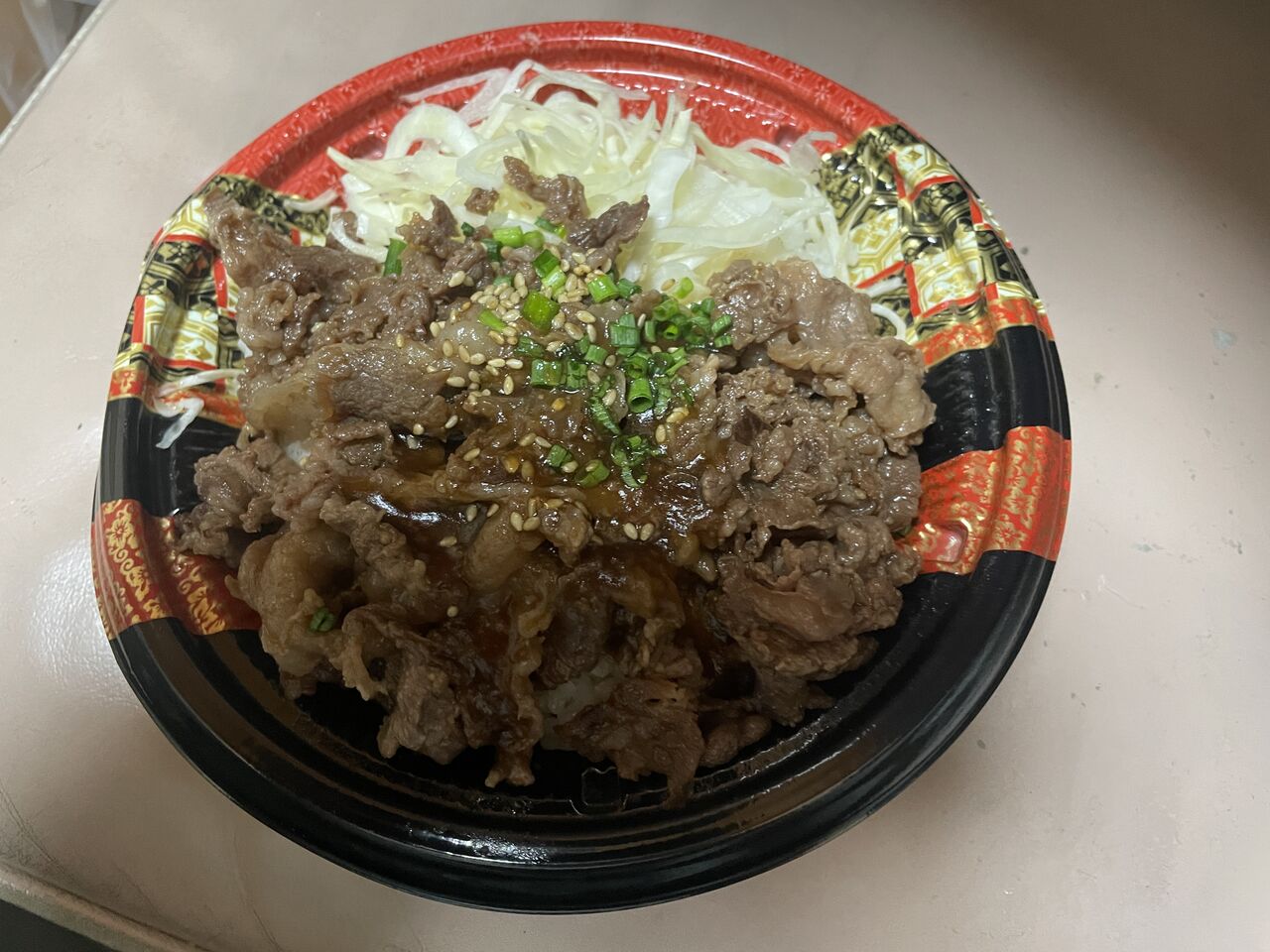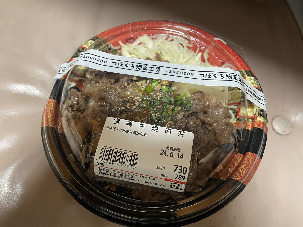 ある日の昼食は、つぼぐちグループの「そうざい屋」さんの、宮崎牛焼き肉丼でした。まいうー!