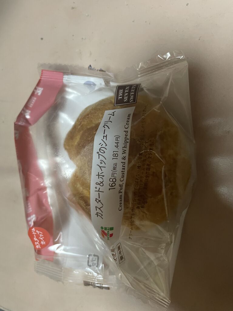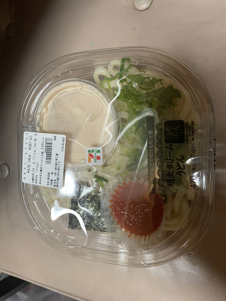 明太クリームうどん。カスタード&ホィツプのシュークリーム。