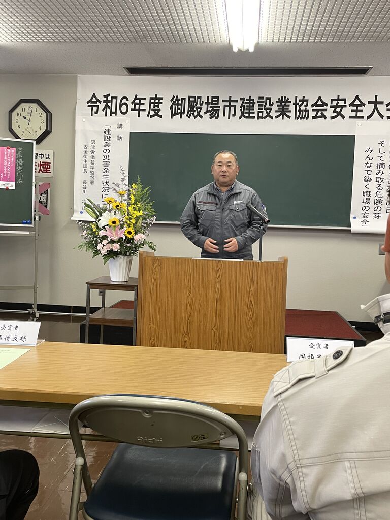 御殿場市建設業協会安全大会、沼津労働基準監督署、安全祈願祭、安全標語、お弁当、ミニどら焼き、サービスショット!