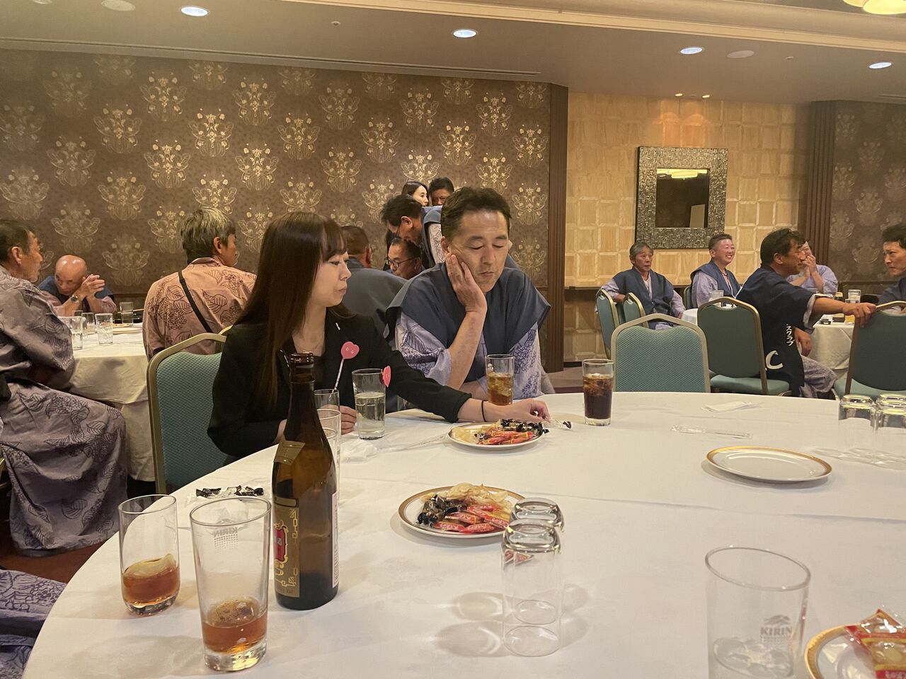 昨日の続き、2次会へ向かう途中の廊下の活け花です。