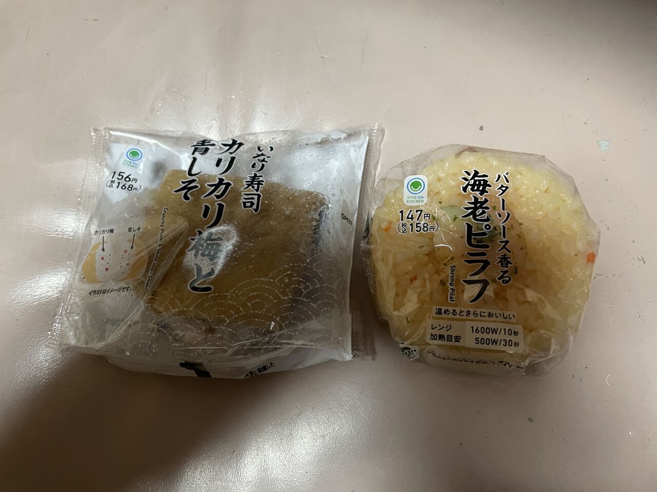 カリカリ梅と青しそ いなり寿司、バターソース香る 海老ピラフ。