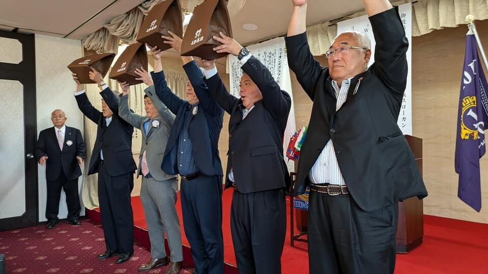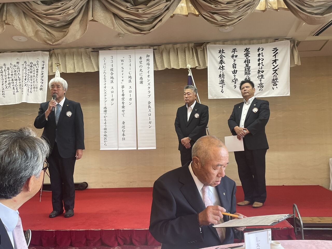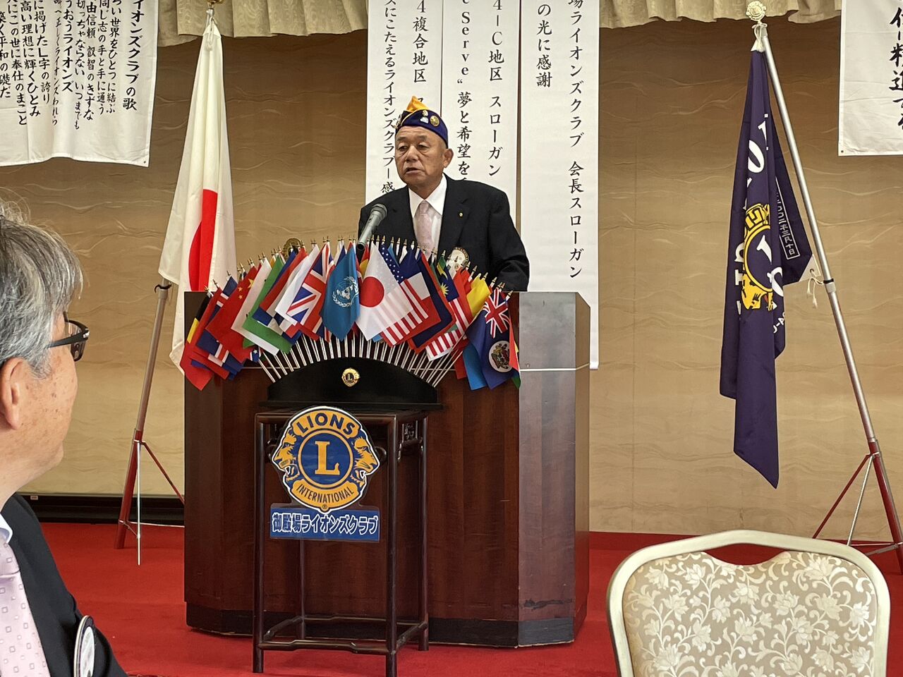 この日はライオンズクラブの例会でした。太田会長、挨拶。