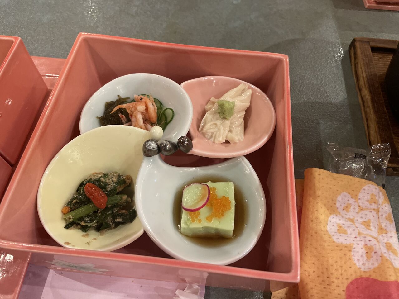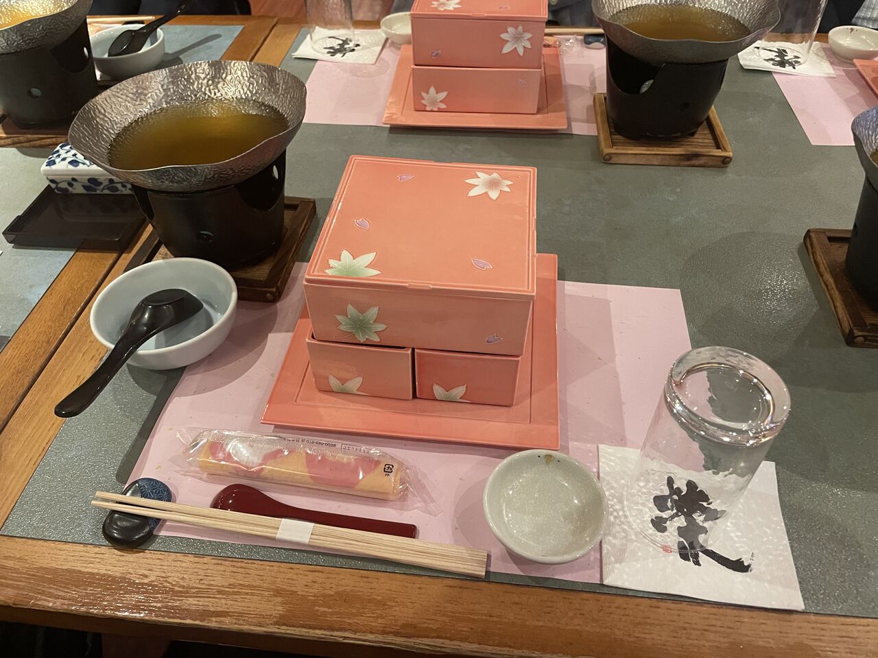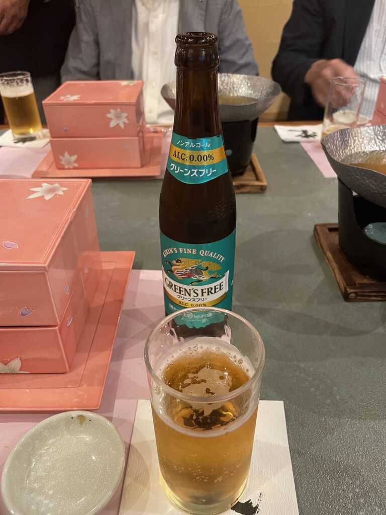 「ふくふく」富士岡会、ノンアルコールビール、ジャンボ茶碗蒸し、しゃぶしゃぶ、天婦羅、お寿司、みそ汁、デザート、サービスショット!