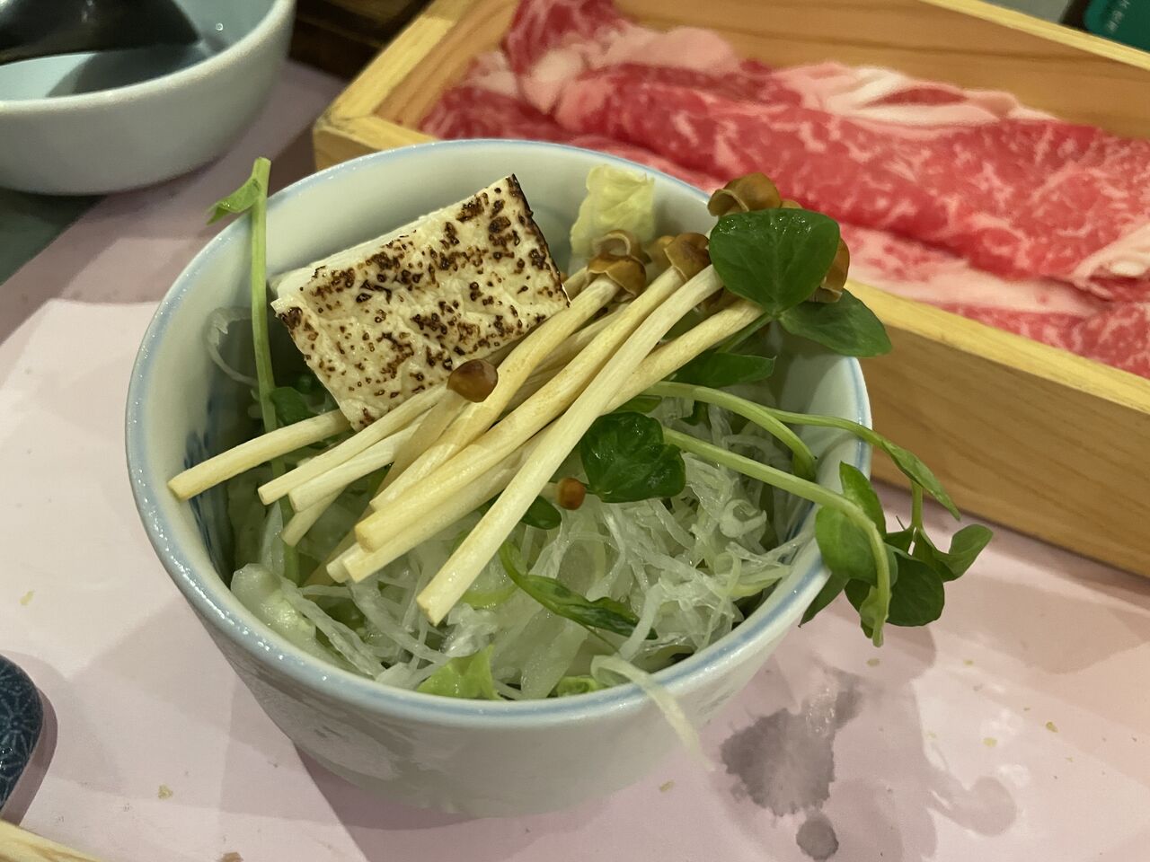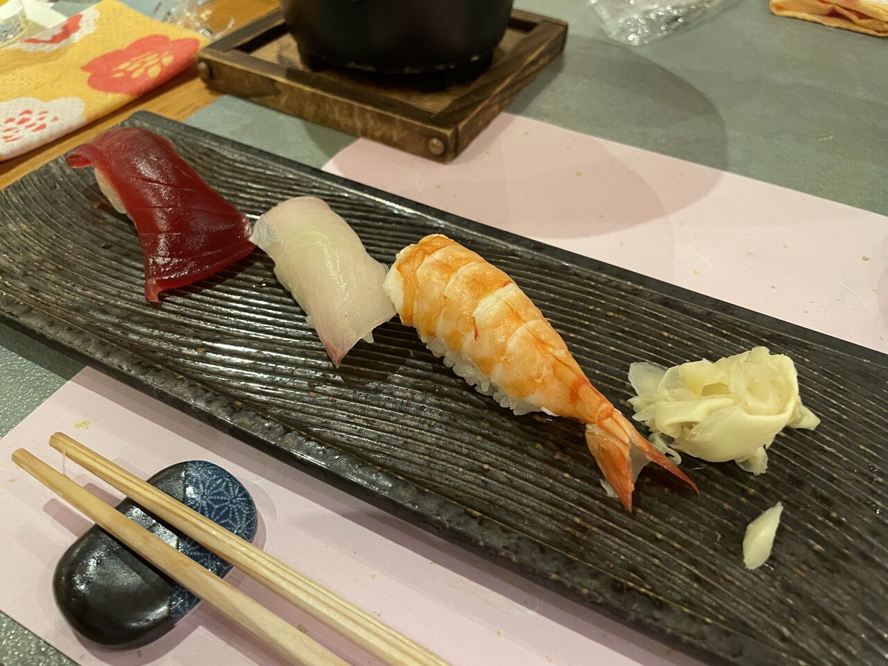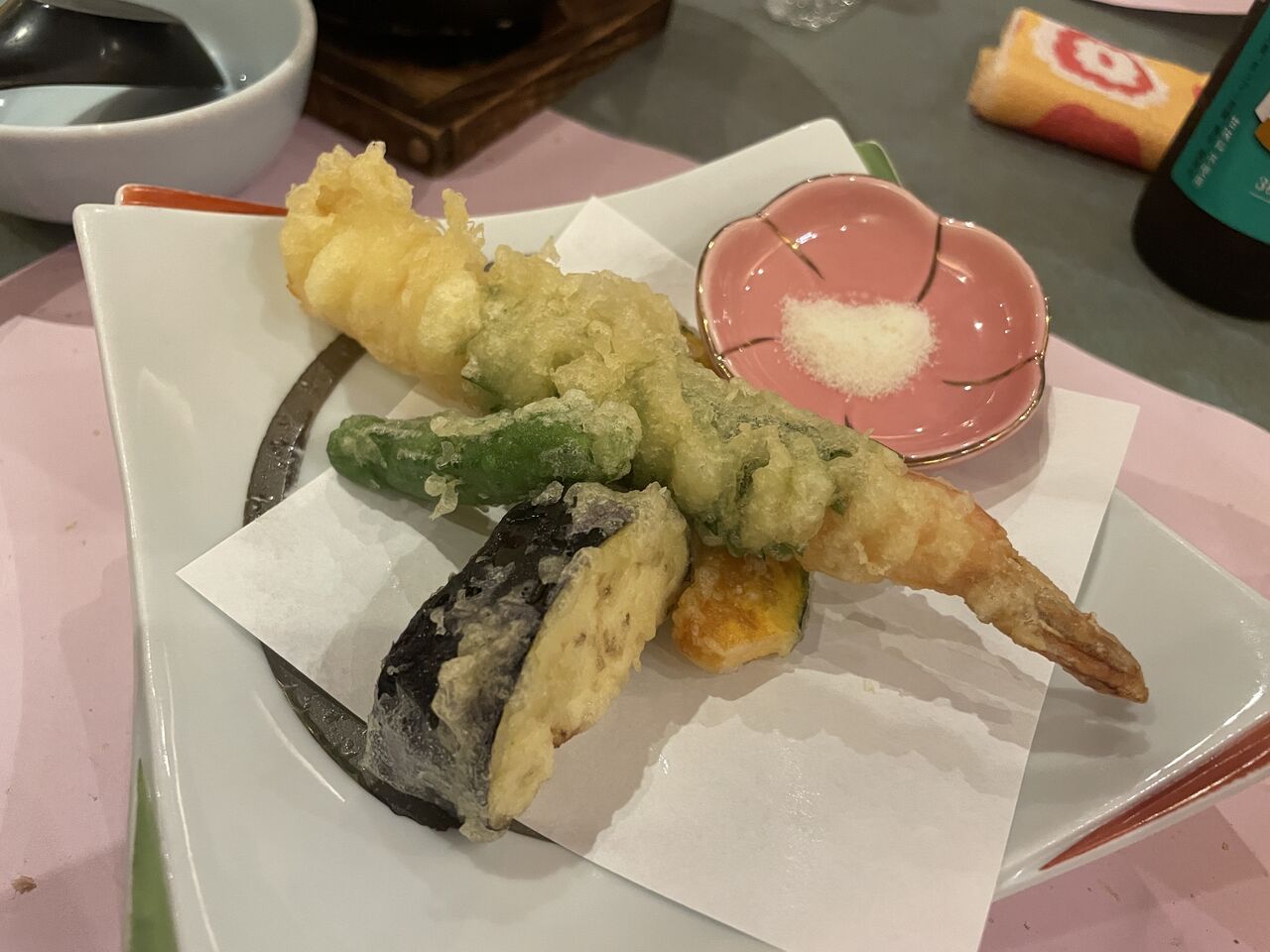 「ふくふく」富士岡会、ノンアルコールビール、ジャンボ茶碗蒸し、しゃぶしゃぶ、天婦羅、お寿司、みそ汁、デザート、サービスショット!