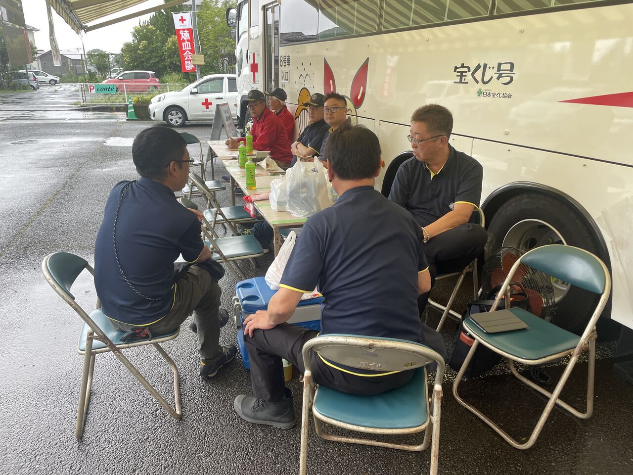 この日は、商工会館でライオンズクラブの献血活動。お菓子をアイスを差し入れました。