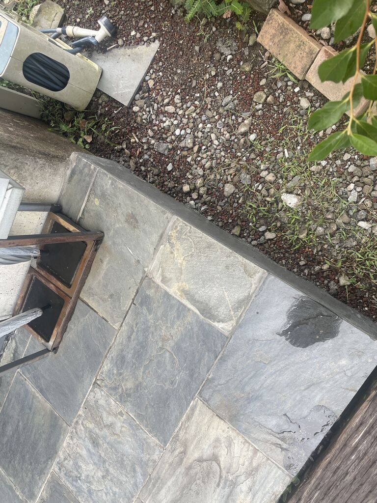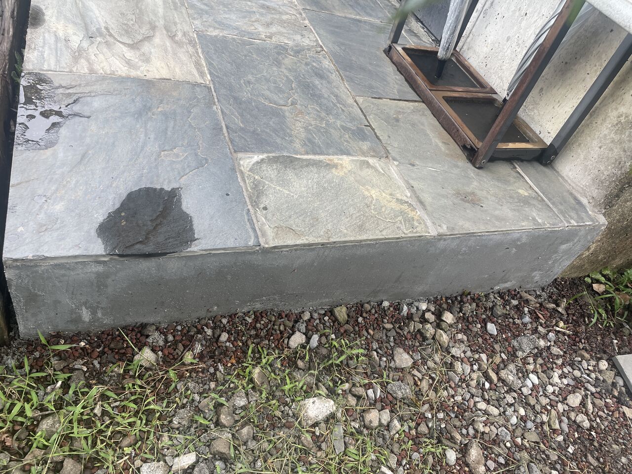 某所、玄関ポーチの石貼り、端部が崩れて、石が何枚か剥がれたのを修繕完了。