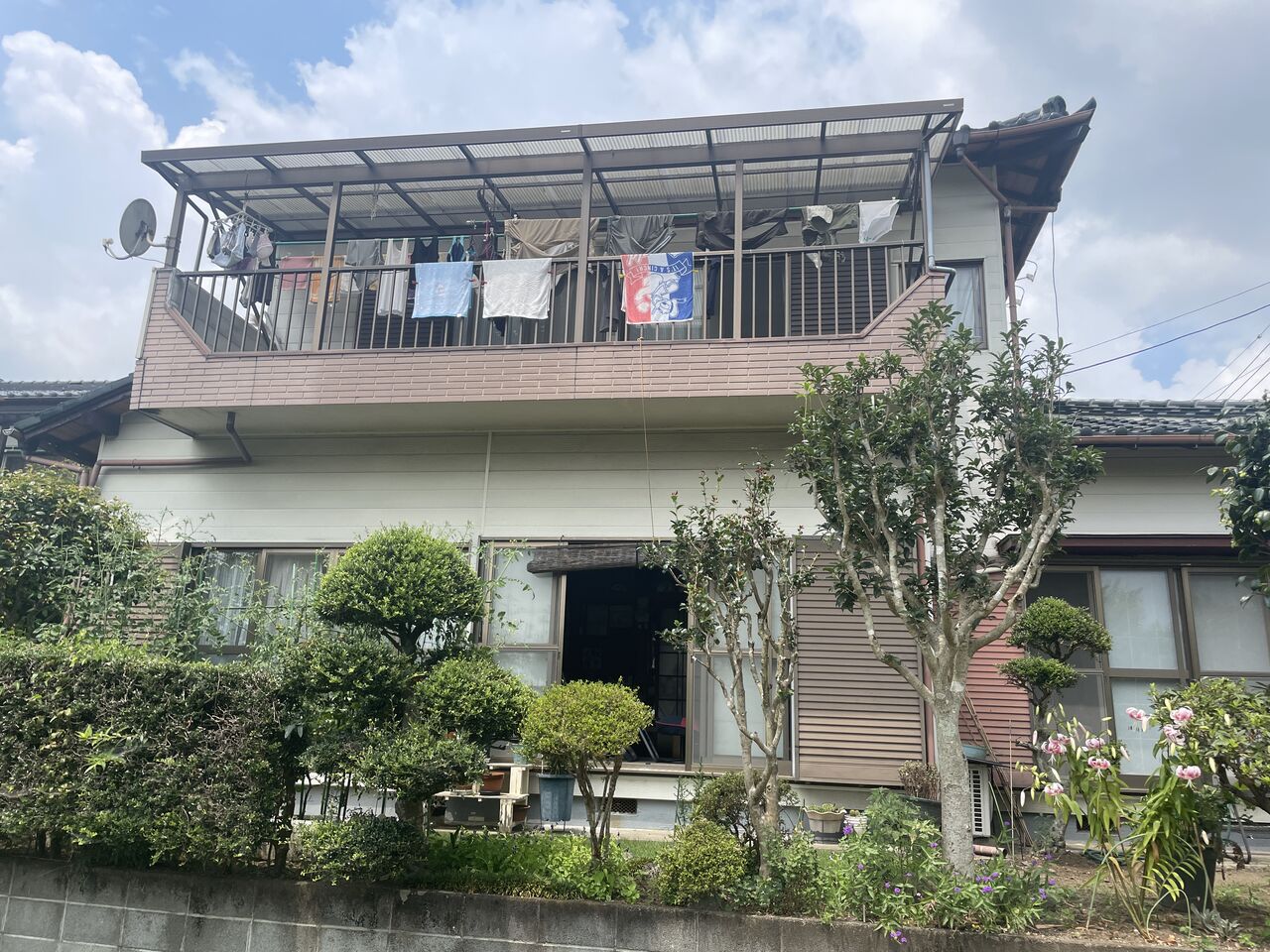 某所、ベランダのシート防水が傷んできたので、上からFRP防水を施工し、外壁サイディングの目地コーキングも劣化して切れてきているので、打ち替え予定です。