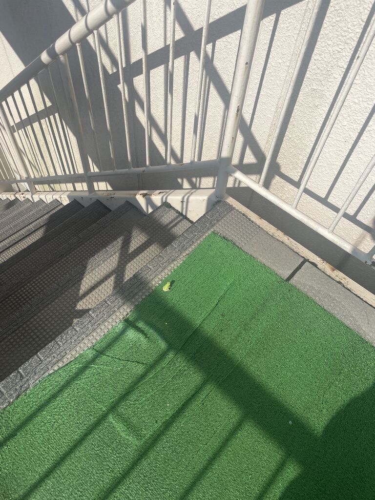 事務所前の階段踊り場に、カエルくん発見。そんなとこにいると、踏まれちゃうよ!
